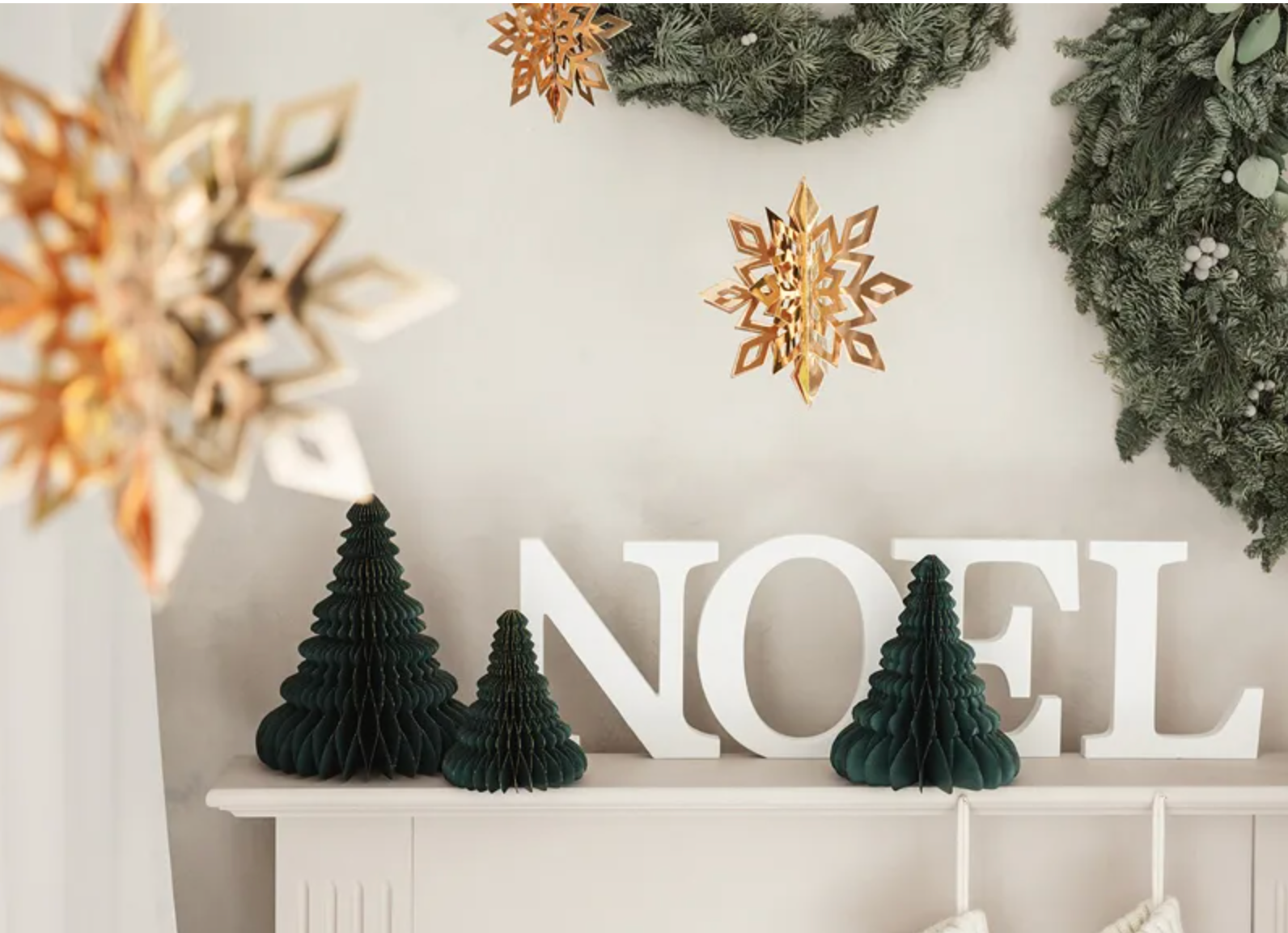 Honeycomb Christmas Tree Paper Ornament, Bottle Green, 20cm