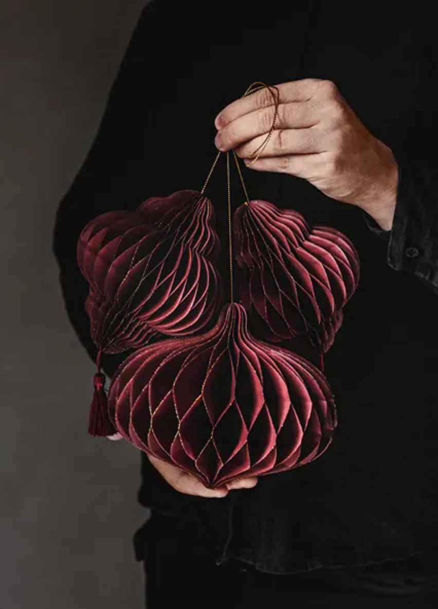 Honeycomb paper bauble, oval, burgundy, dimensions approx. 18 x 15 cm. Read more