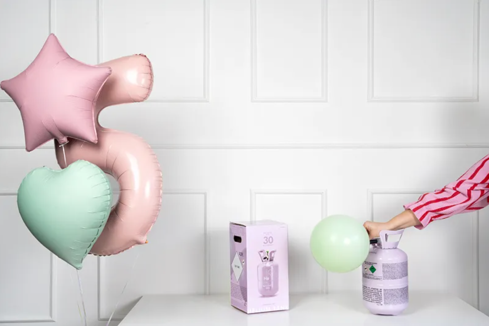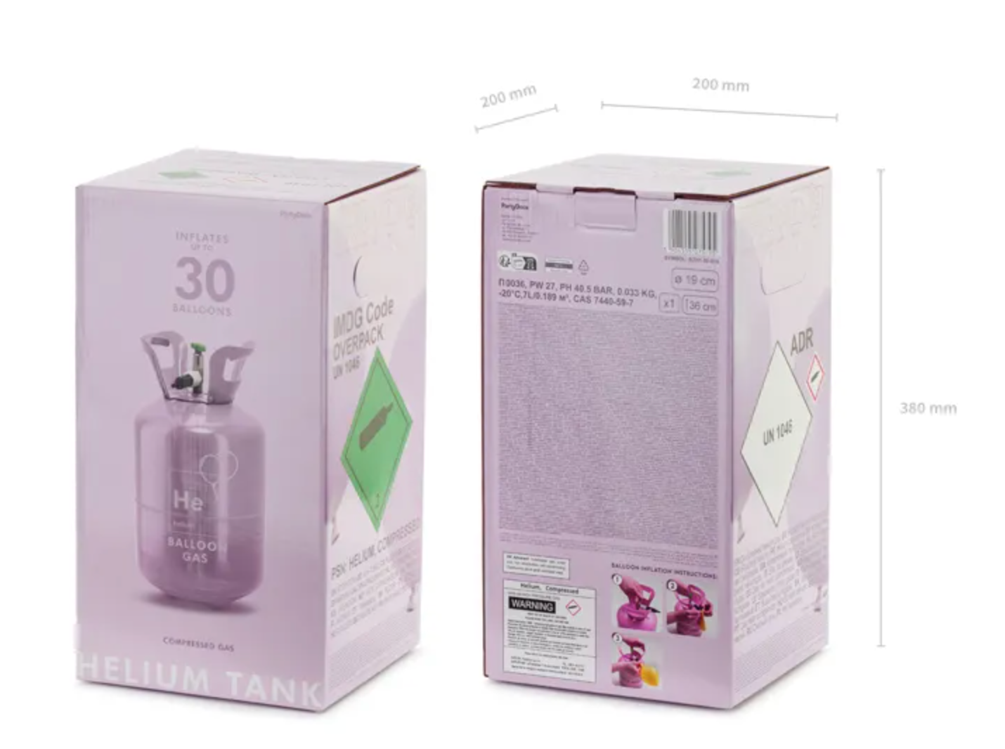 Helium cylinder for up to 30 balloons, purple with black print, capacity approx. 0.189 m³. Read more