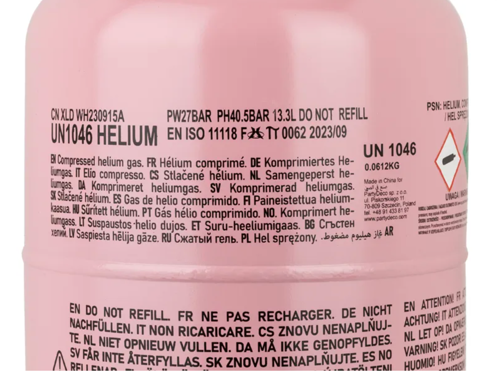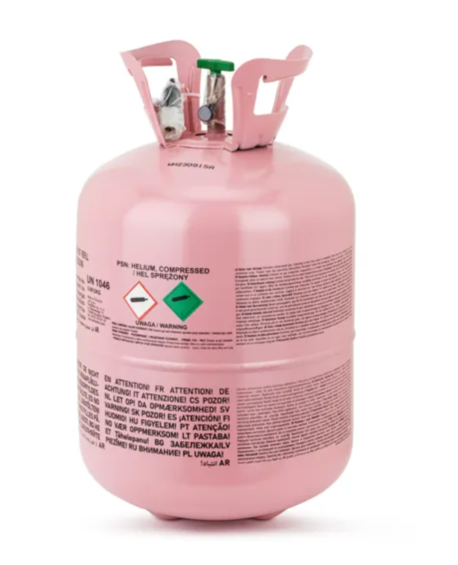 Helium cylinder for up to 50 pink balloons with black print, capacity approx. 0.36 m³.