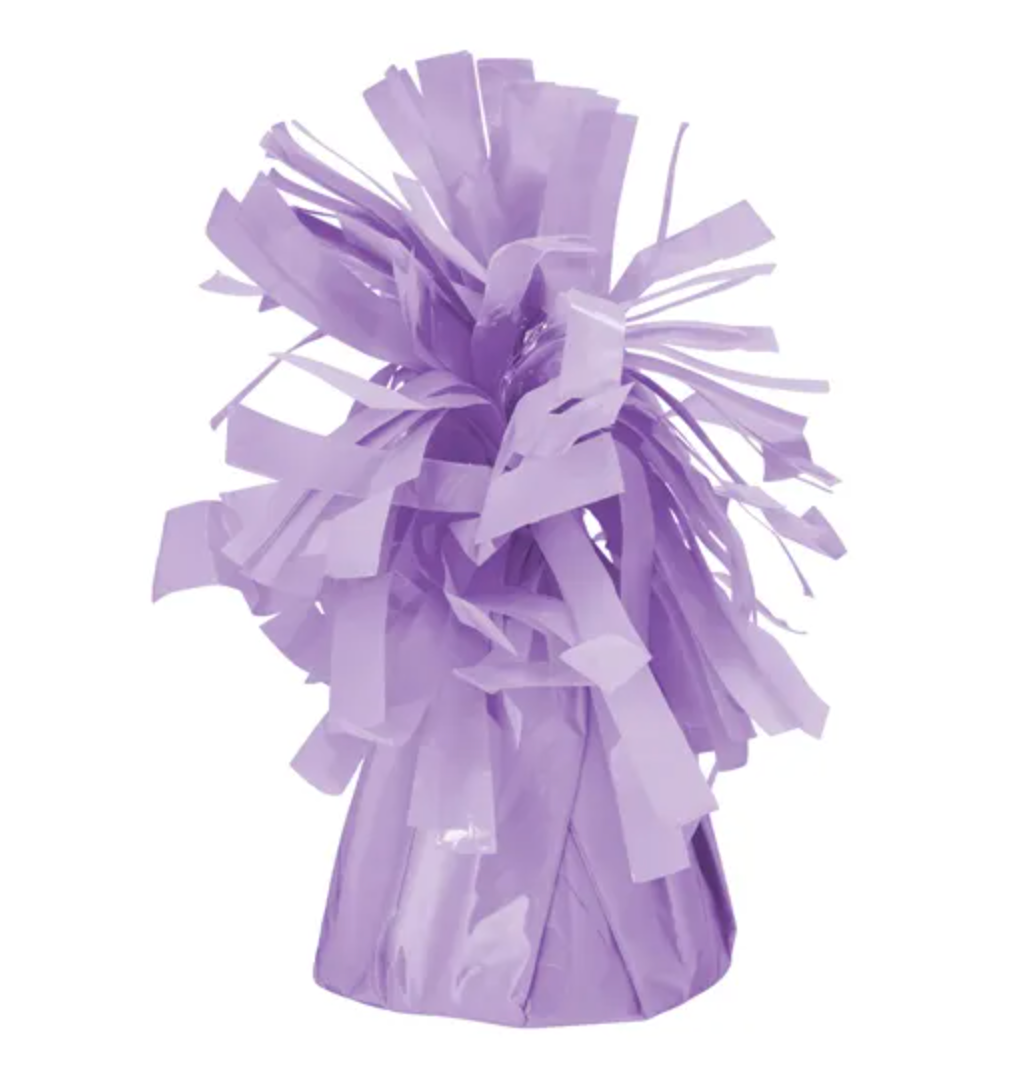 Balloon weight wrapped in light purple pastel foil, height approx. 7 cm, weight approx. 130 g.