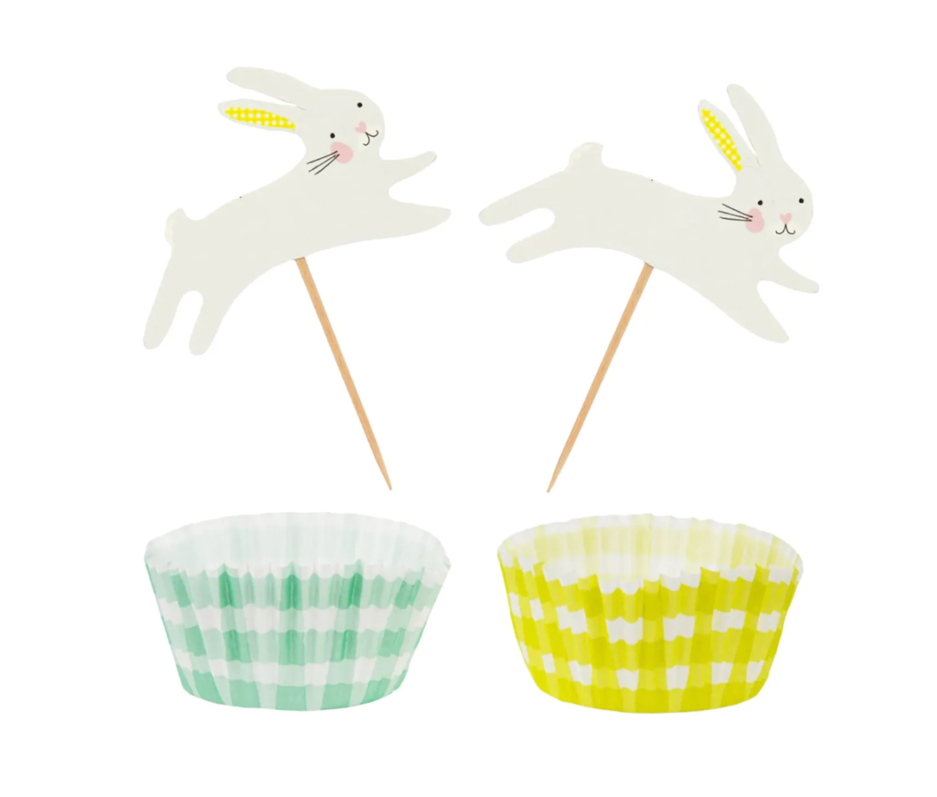 Happy Easter! This adorable Easter Bunny Cupcake Kit is the perfect way for the whole family to make 24 sweet bunny cupcakes together. Decorating is incredibly easy thanks to the white bunny toppers – kids can happily help in the kitchen without making a mess. You'll also find a simple cupcake recipe on the back of the package.