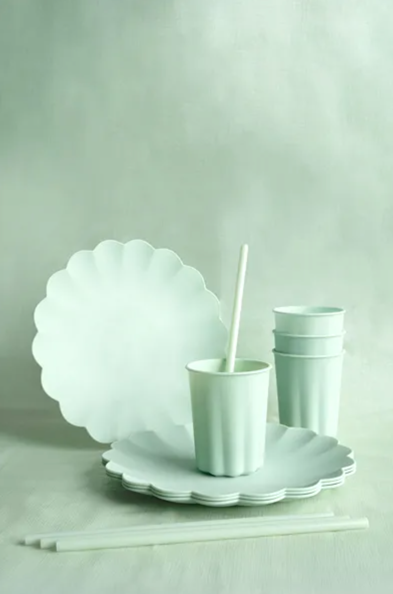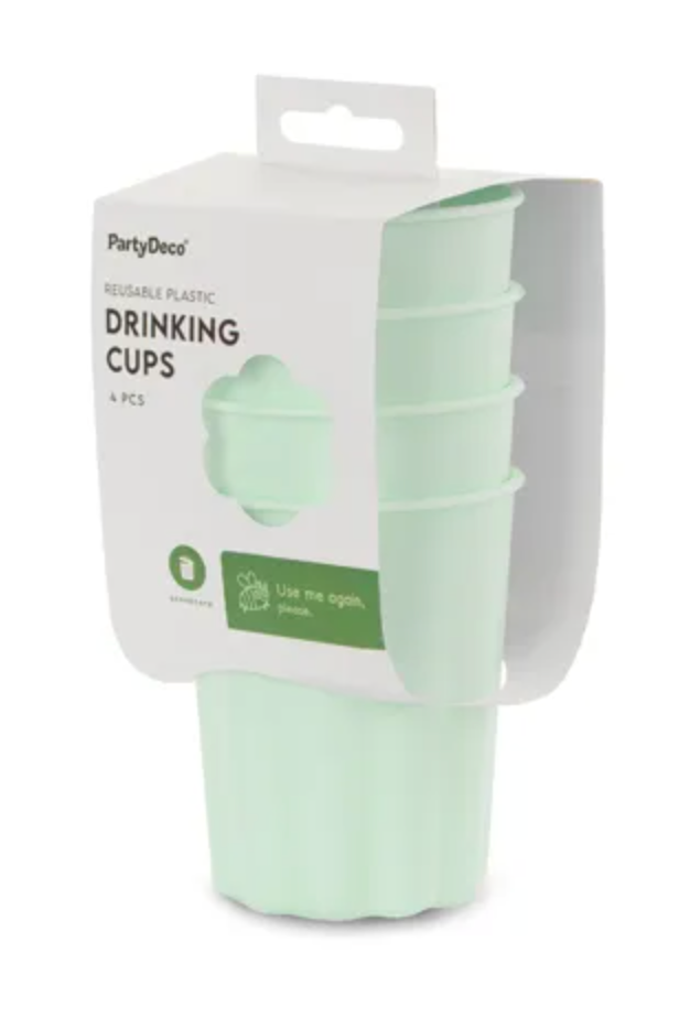 Sage-colored plastic cups, Frill, capacity approx. 220 ml (7.4 oz). Reusable. (1 pack / 4 pcs.) Read more