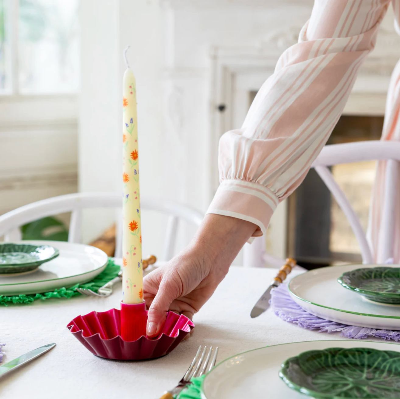 These delicately decorated candles are a charming addition to a table or mantelpiece. The set includes two slim table candles... Read more