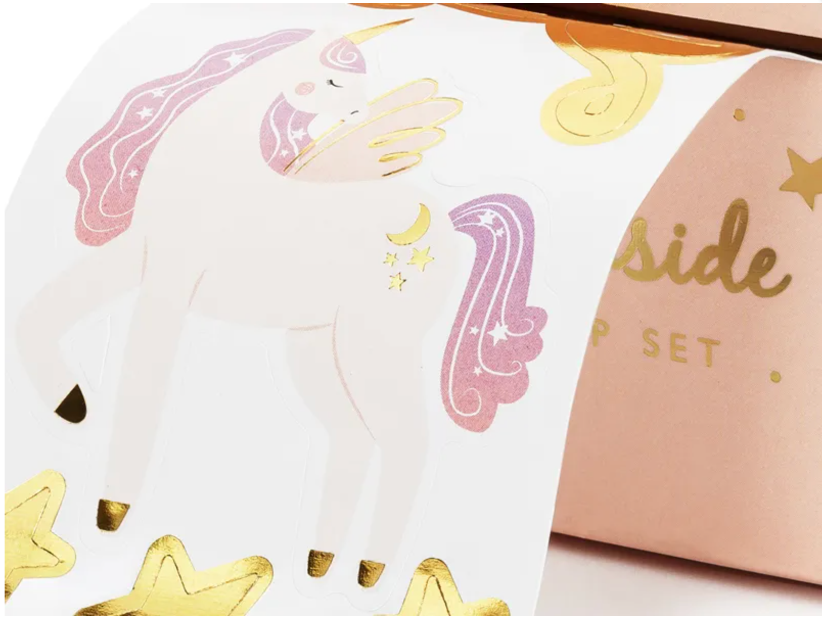 Unicorn stickers on a roll in a box
