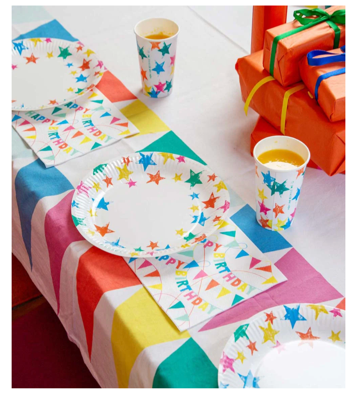 We Heart Birthdays Fabric Tablecloth – Rainbow
