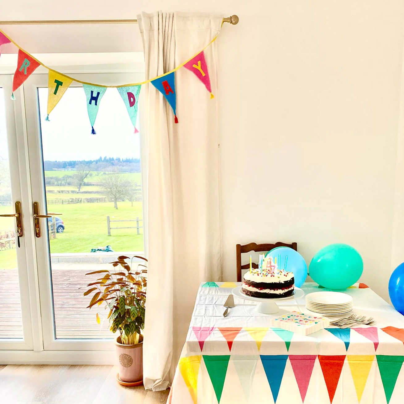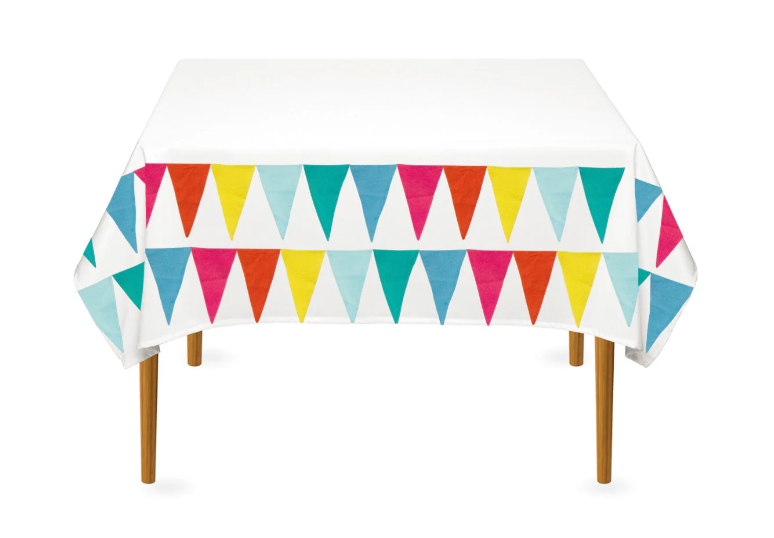 White Fabric Table Cover with Rainbow Bunting Design by Talking Tables. Made from 100% cotton, this rectangular tablecloth is reusable... Read more