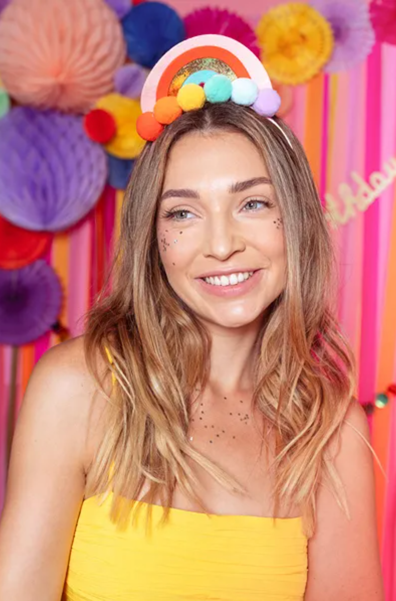 Rainbow headband with colorful pompoms, size approx. 14 x 19.5 cm. 1 pack / 1 pc. Read more