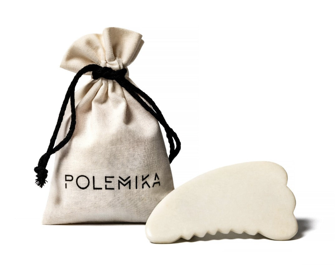 The tiles are made of jade, a natural stone, so each tile is unique. The tiles are sold in a cotton bag with the Polemika logo.
