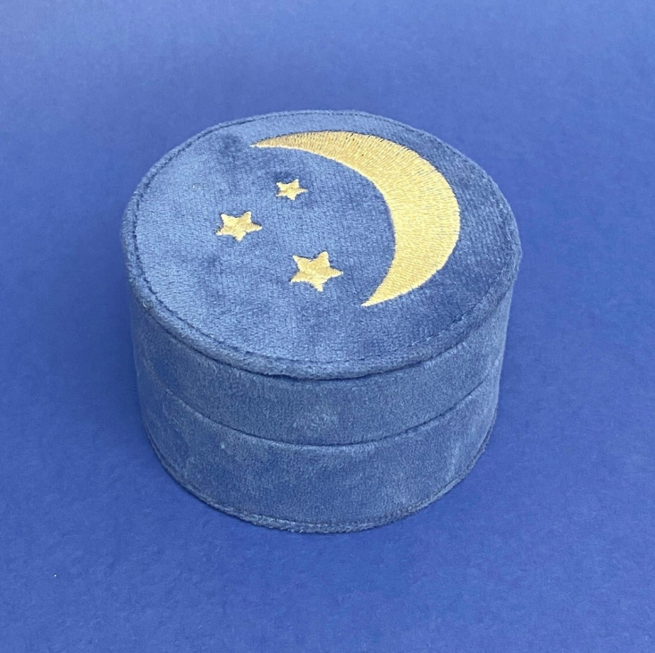 A small jewelry box with a moon and stars motif. Read more