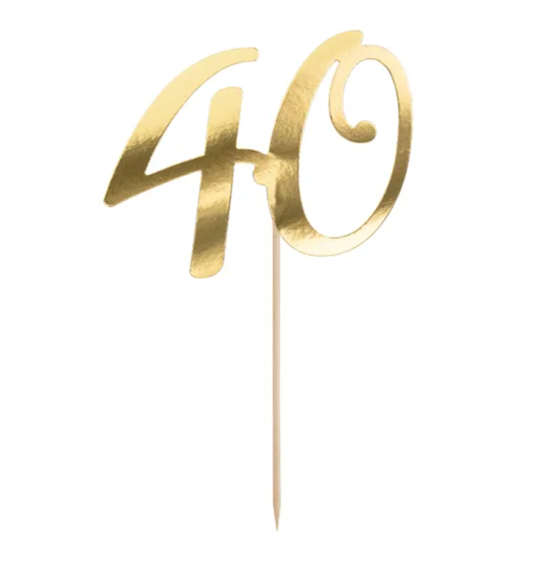 Cake topper with the number 40 in gold, height approx. 20.5 cm.