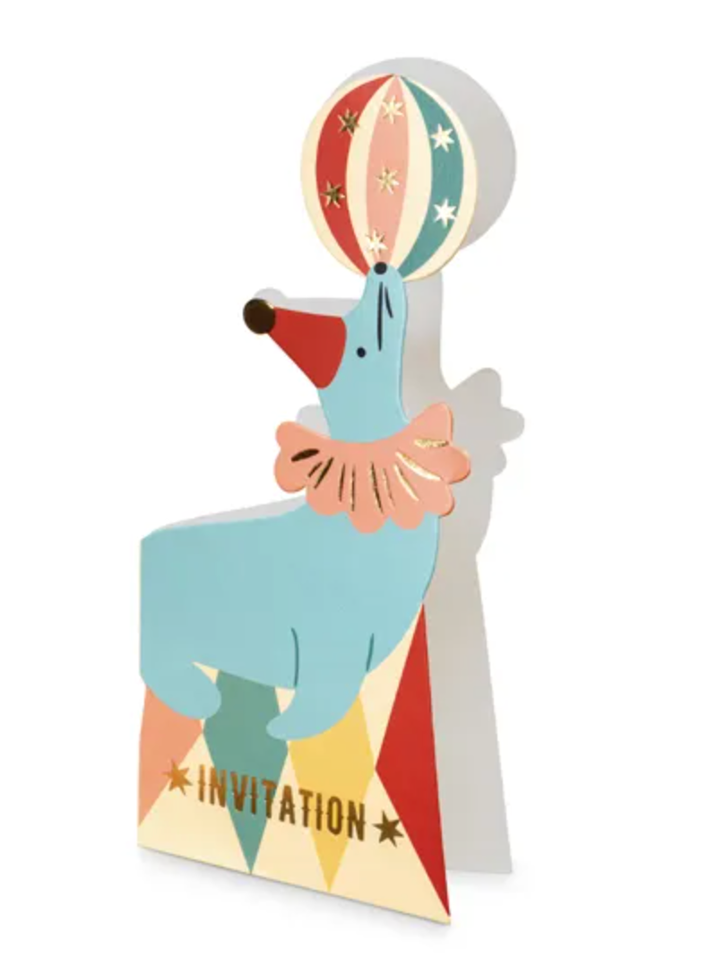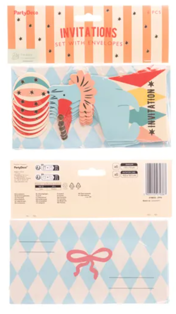 Seal-shaped invitations with print, dimensions approx. 8.5 x 18.5 cm. Envelopes included. (1 pack / 6 pcs.) Read more