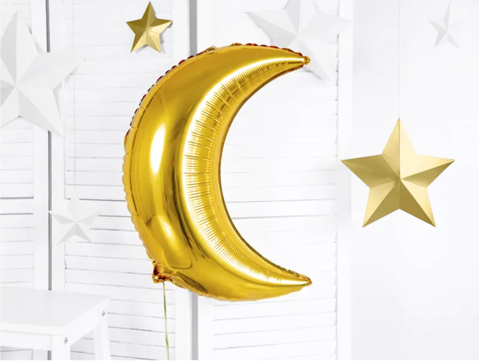 Balon foliowy metalizowany Księżyc w kolorze złotym, wymiary przed napompowaniem ok. 70 cm (28''), wymiary po napompowaniu ok. 60 cm... Czytaj więcej