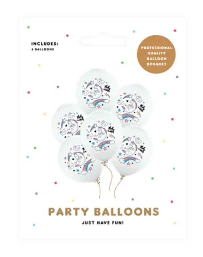 Balony 30cm, Jednorożec, Pastel Pure White (6szt.)