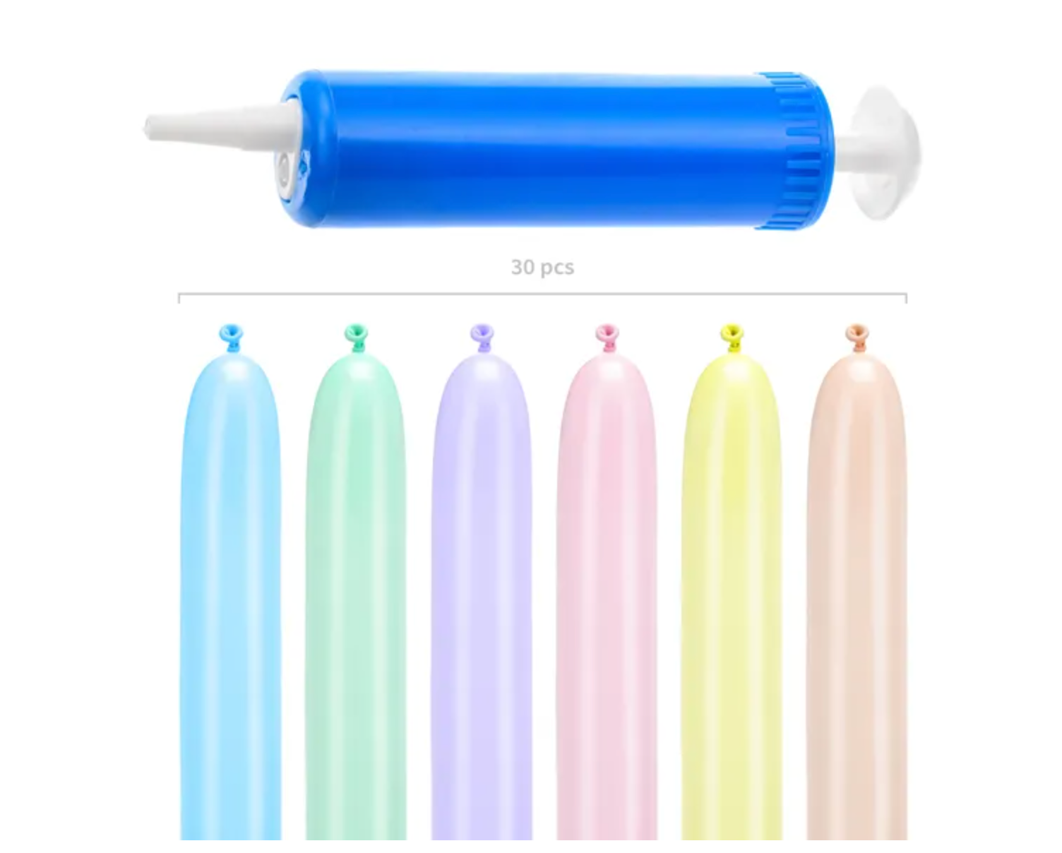 Balony modeliny pastelowe z pompką, mix kolorów: jasny żółty, jasny pomarańcz, liliowy, jasny różowy, mięta, jasny niebieski. Wymiary ok. 5... Czytaj więcej