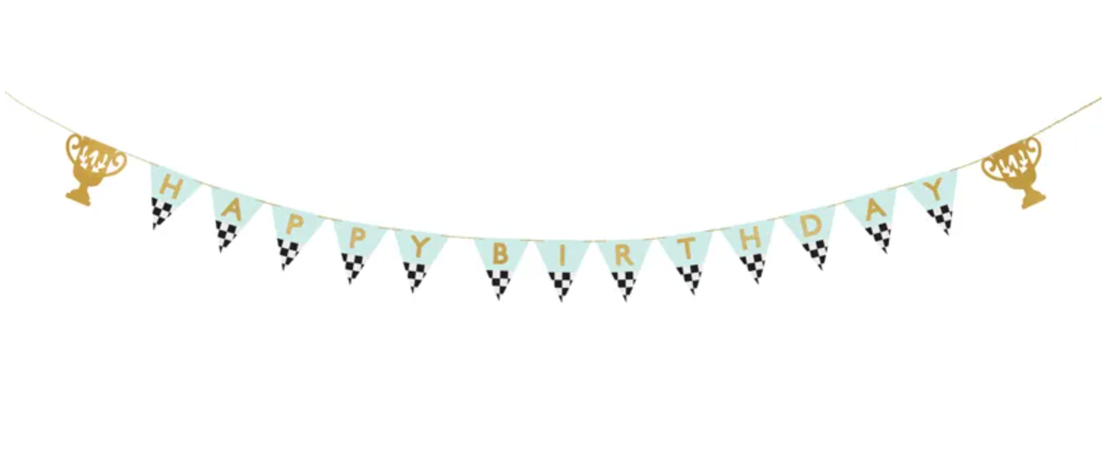 Baner Puchary z napisem ''Happy Birthday'' wykonany z papieru, mix kolorów. Wysokość ok. 13 cm, długość sznurka ok. 3 m.... Czytaj więcej