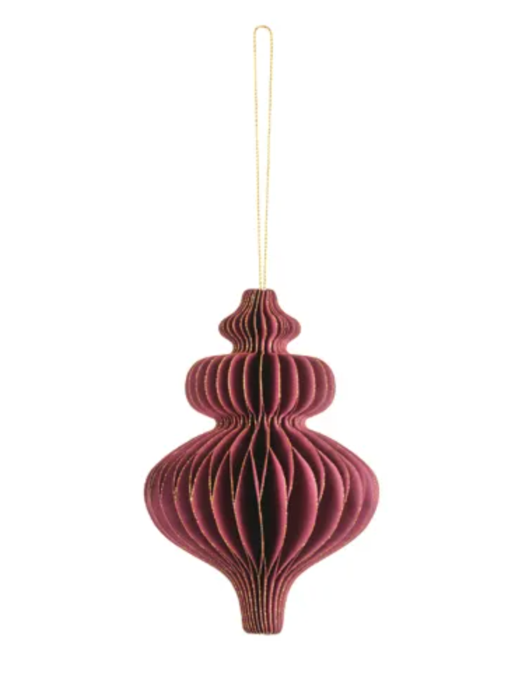 Bombka papierowa honeycomb Sopelek w kolorze burgundowym, wymiary ok. 10 x 15 cm.