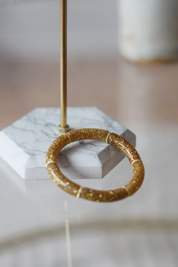 Błyszcząca bransoletka GOLD ÉCLAT w odcieniu złota z brokatem. Subtelny blask i ręczne wykonanie – idealna na prezent lub wieczorne... Czytaj więcej
