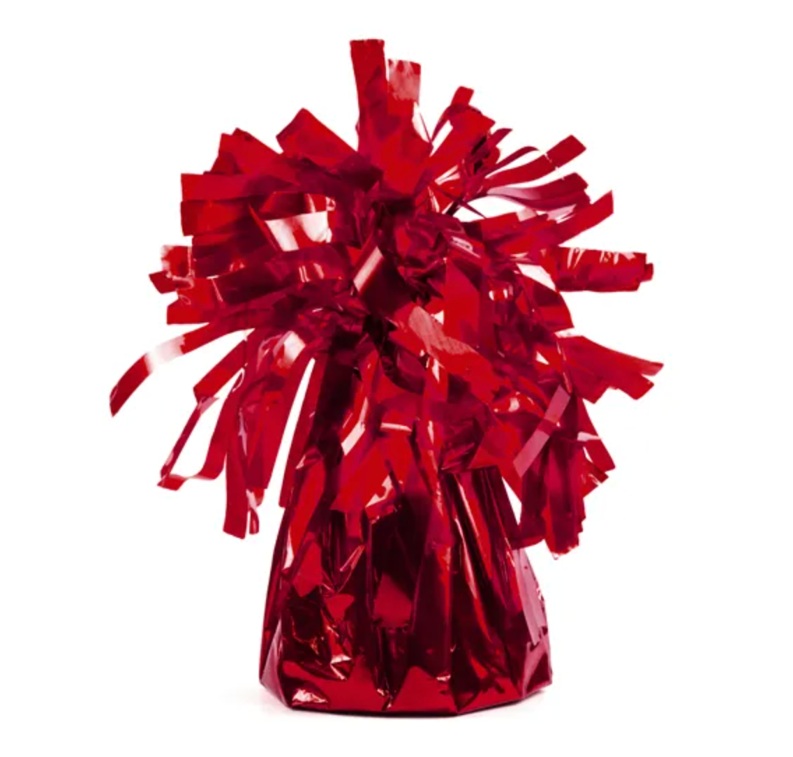 Ciężarek do balonów owinięty folią w kolorze czerwonym, wysokość ok. 7 cm, waga ok. 130 g. Czytaj więcej
