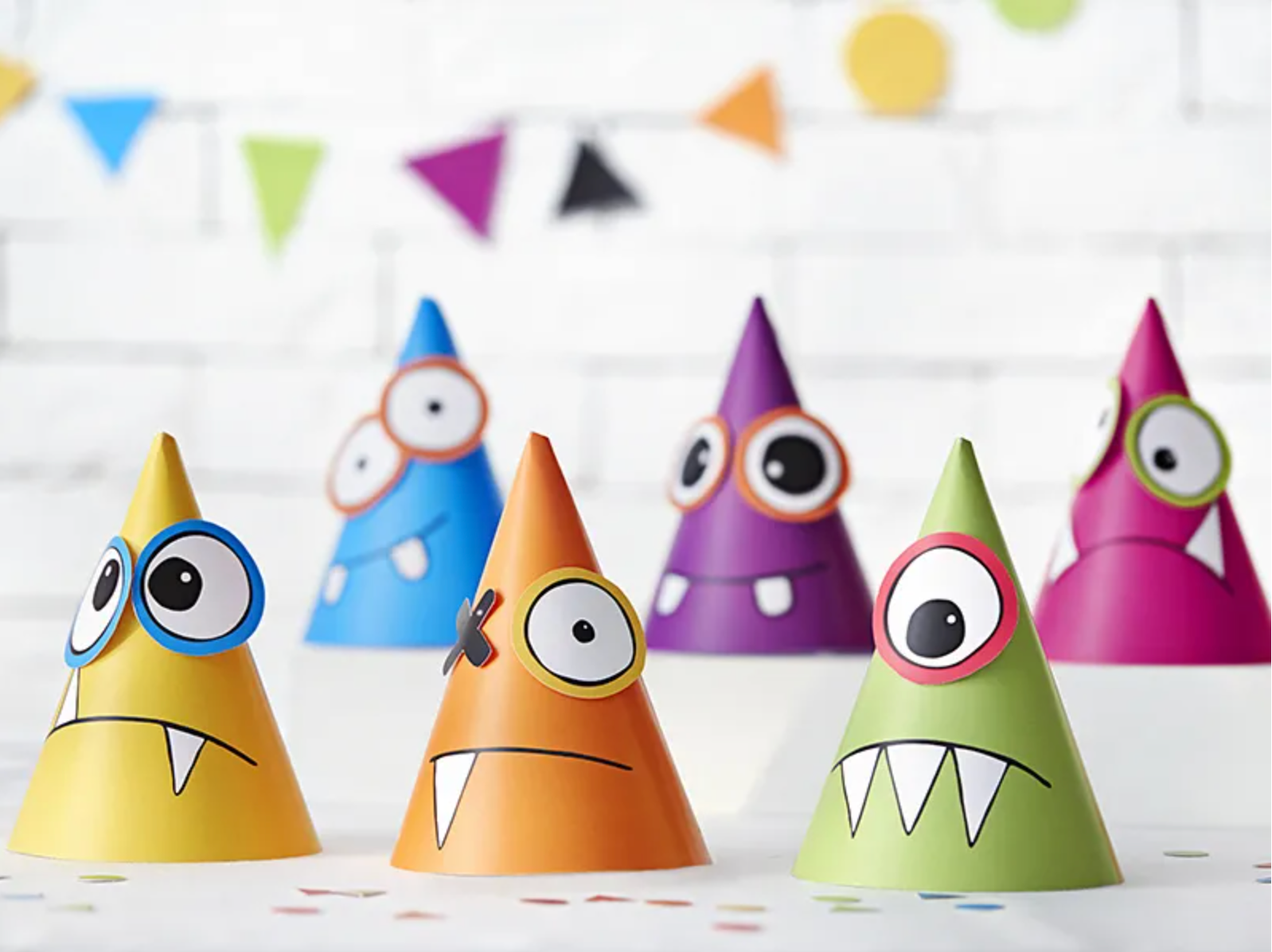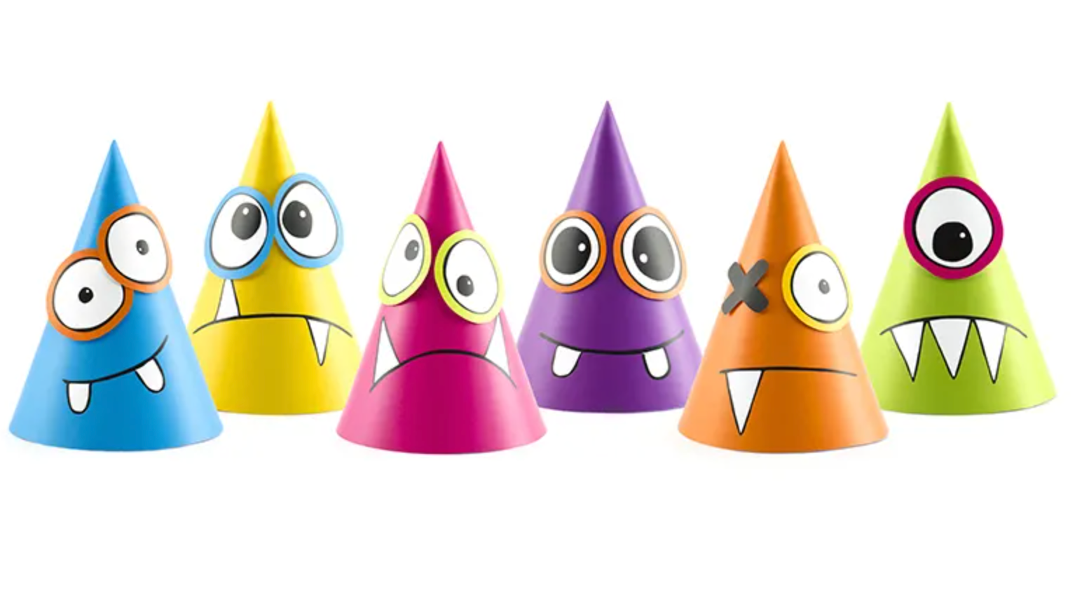 Czapeczki papierowe Potworki, mix wzorów, do samodzielnego złożenia, wymiary po złożeniu: wysokość ok. 16 cm, średnica ok. 10 cm.(1 op.... Czytaj więcej