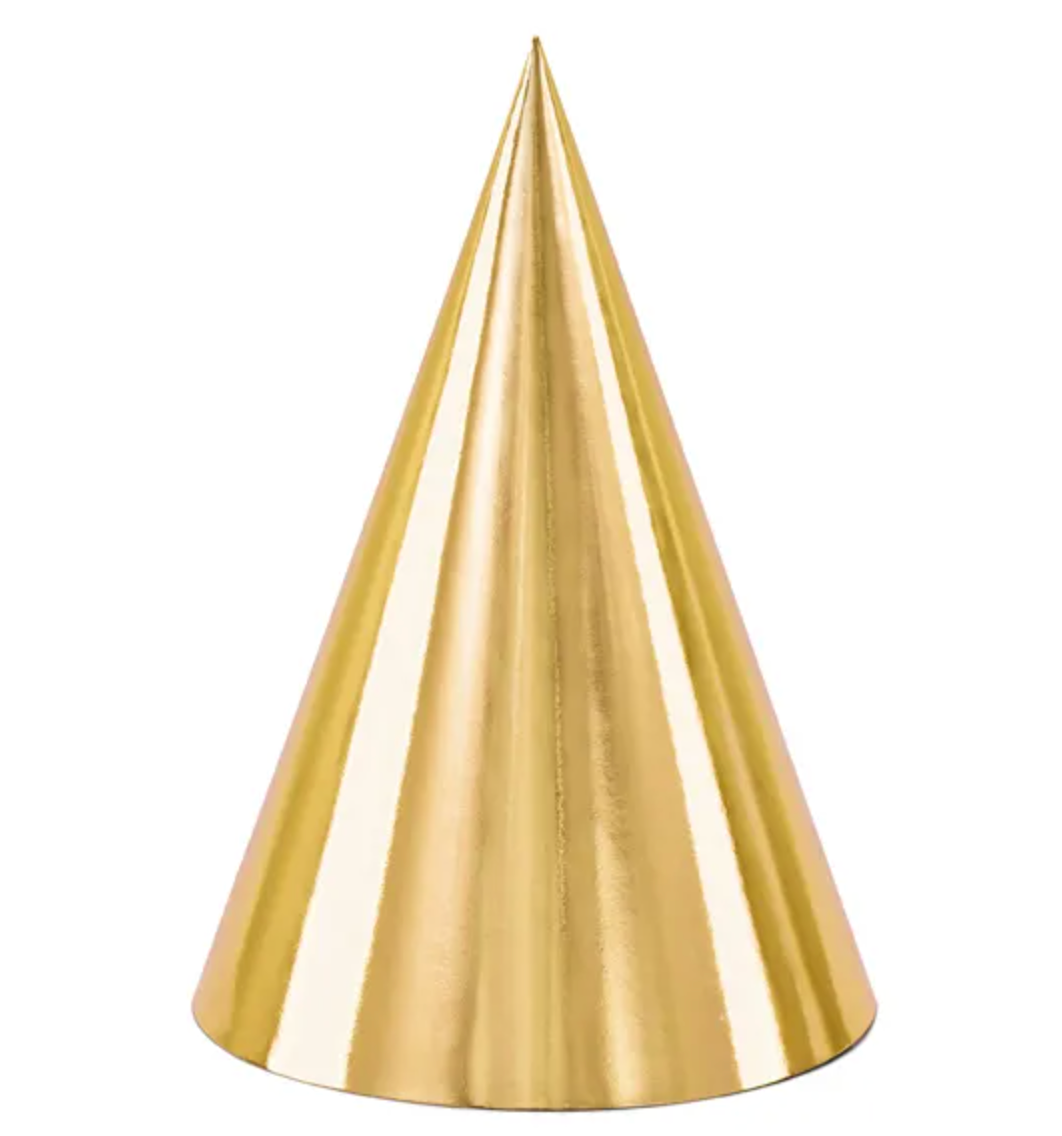 Czapeczki wykonane z papieru w kolorze złotym, wysokość ok. 16 cm, średnica ok. 10 cm.(1 op. / 6 szt.) Czytaj więcej