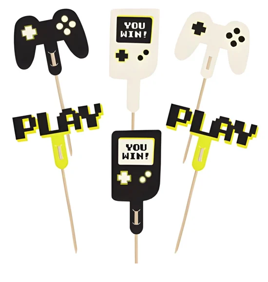 Dekoracje do muffinek - Gamer, zestaw zawiera 6 elementów (4 wzory), mix kolorów, wysokość ok. 6 - 10.5 cm. Produkt... Czytaj więcej