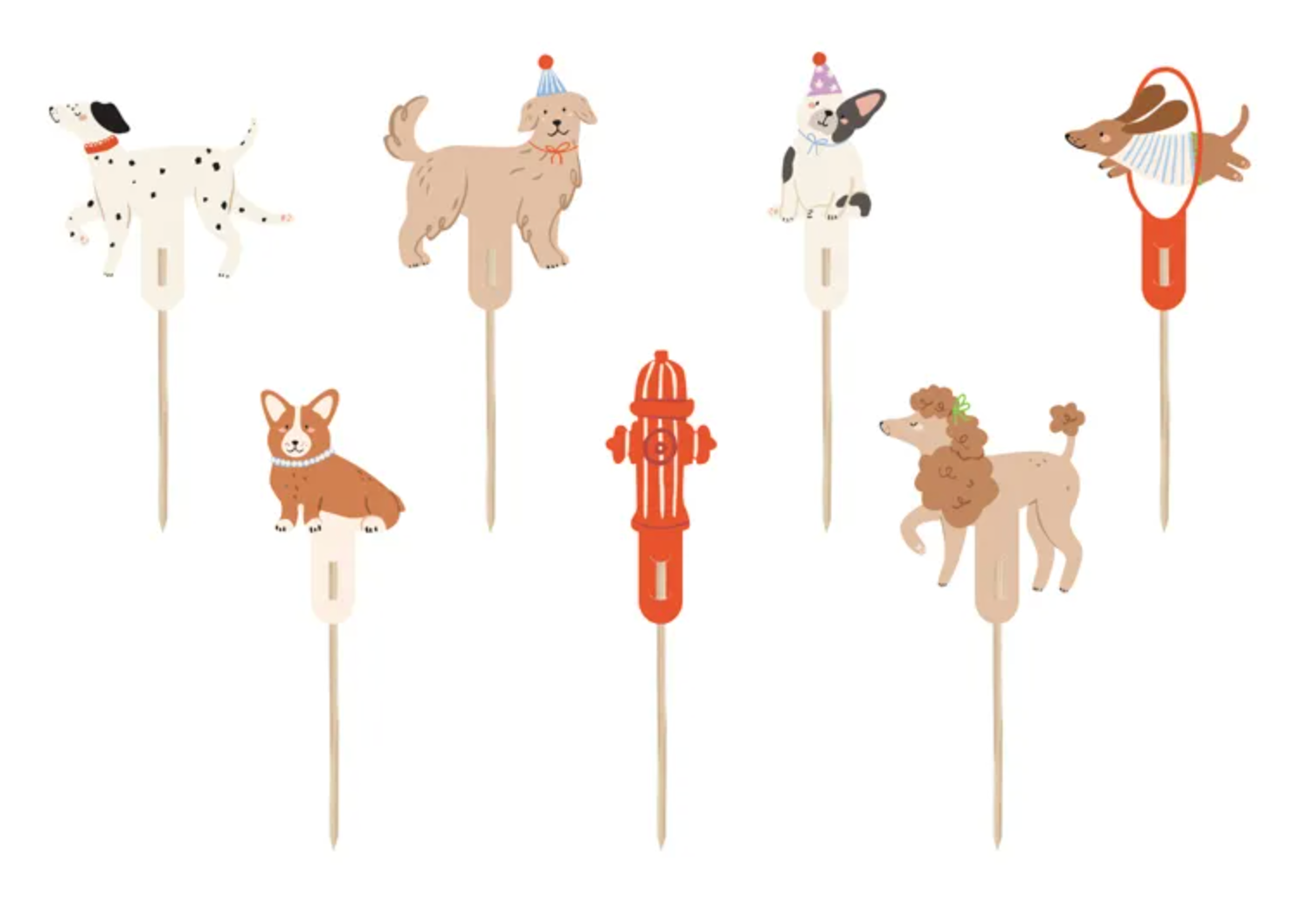 Dekoracje papierowe do muffinek Pieski i hydrant, mix kolorów, wymiary pojedynczych papierowych elementów: ok. 7,3-9,6 cm, wysokość drewnianych patyczków: 10... Czytaj więcej
