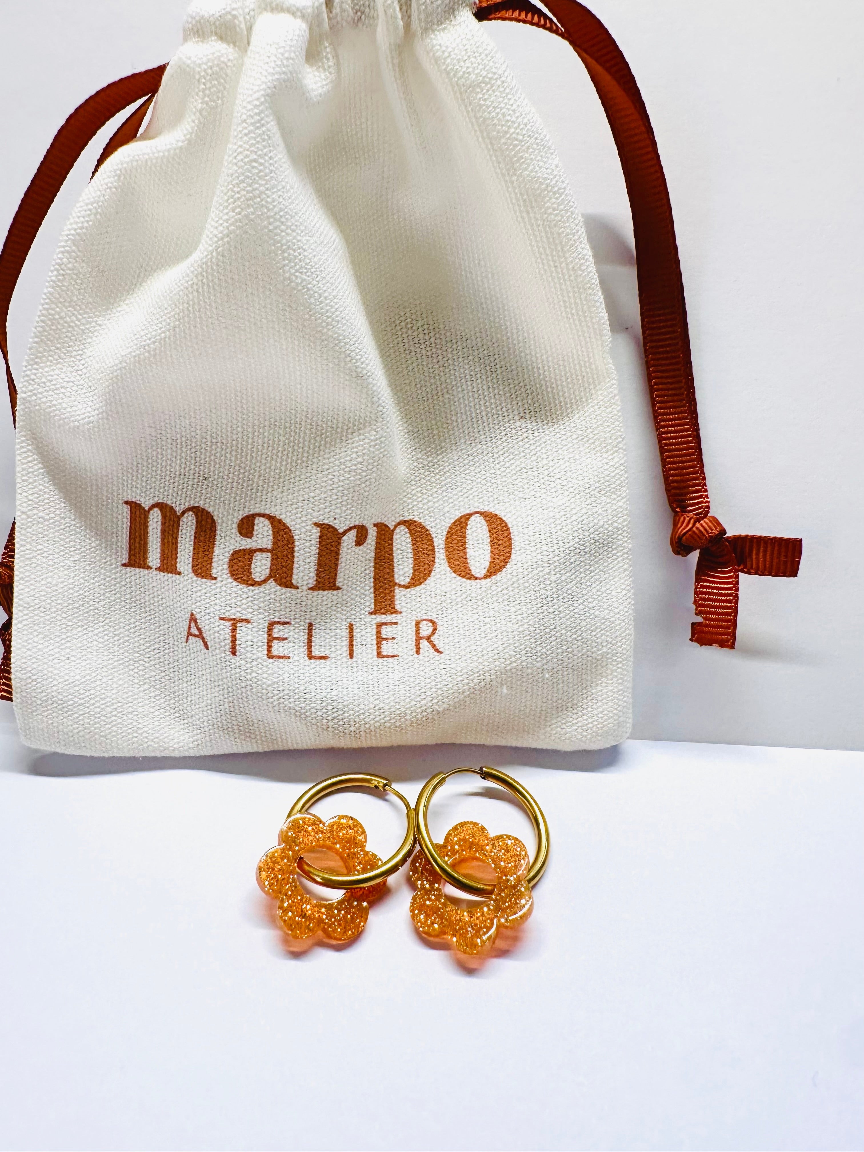 Kolczyki FLORE z pomarańczowym brokatem – lekkie, błyszczące i pełne energii. Artystyczny akcent do każdej stylizacji. kolory mogą się... Czytaj więcej