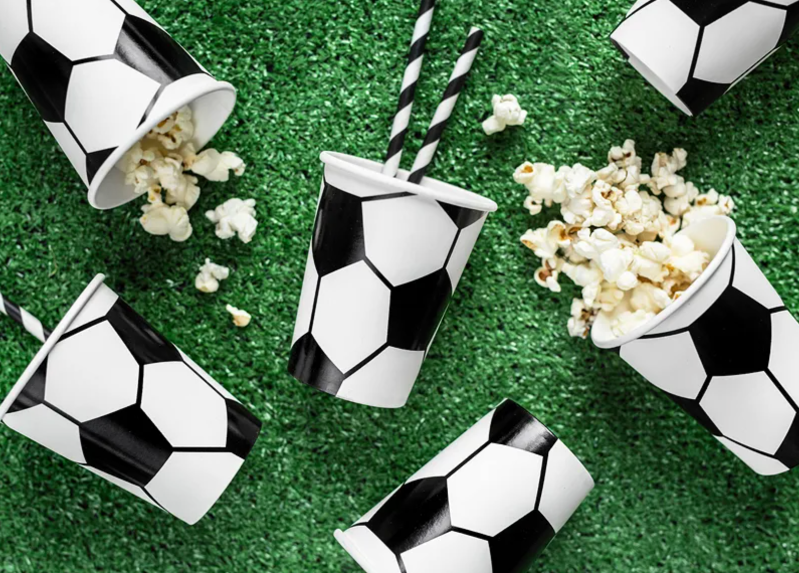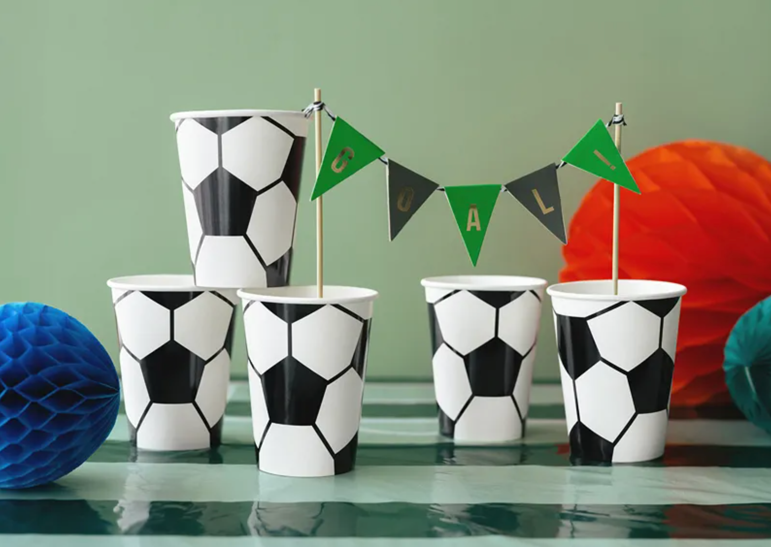 Kubeczki papierowe Piłka zrobione z matowego papieru z czarnym błyszczącym nadrukiem, pojemność ok. 260 ml. (1 op. / 6 szt.) Czytaj więcej