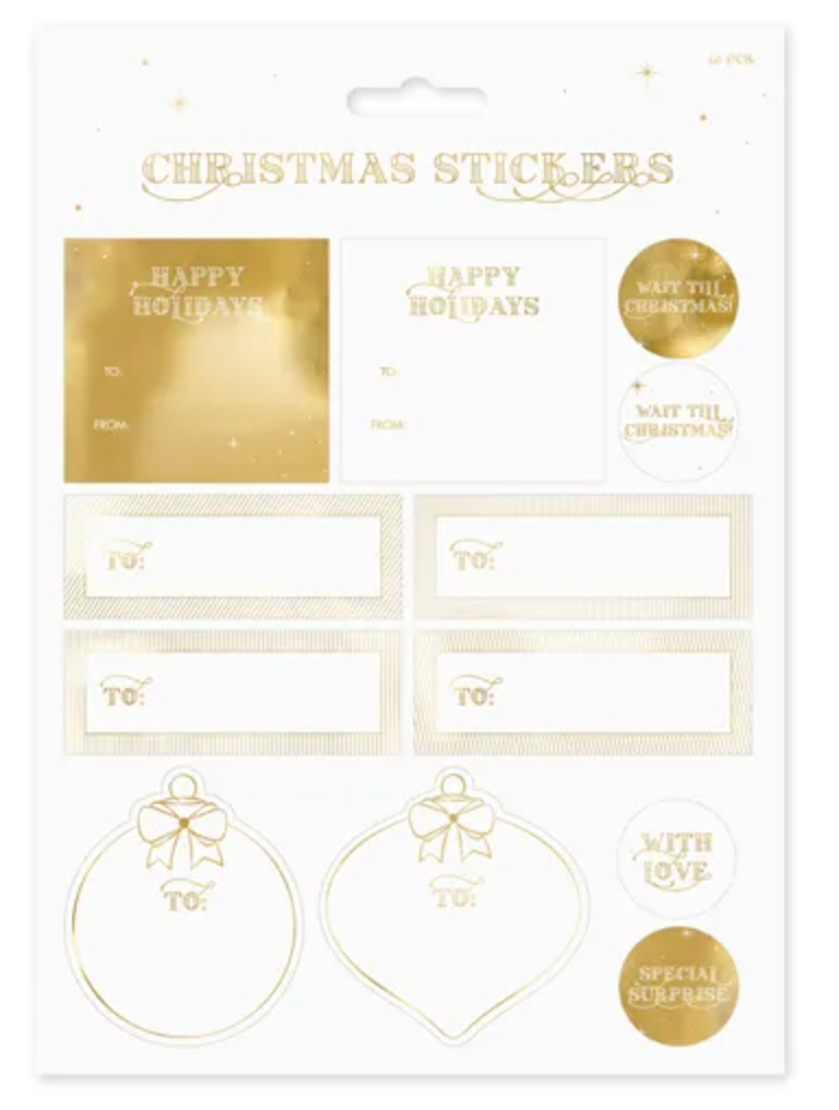 Naklejki świąteczne, mix wzorów w złotym kolorze, zestaw zawiera 12 naklejek na blistrze, wymiary ok. 6.5-8.5 x 3-6.5 cm. Czytaj więcej