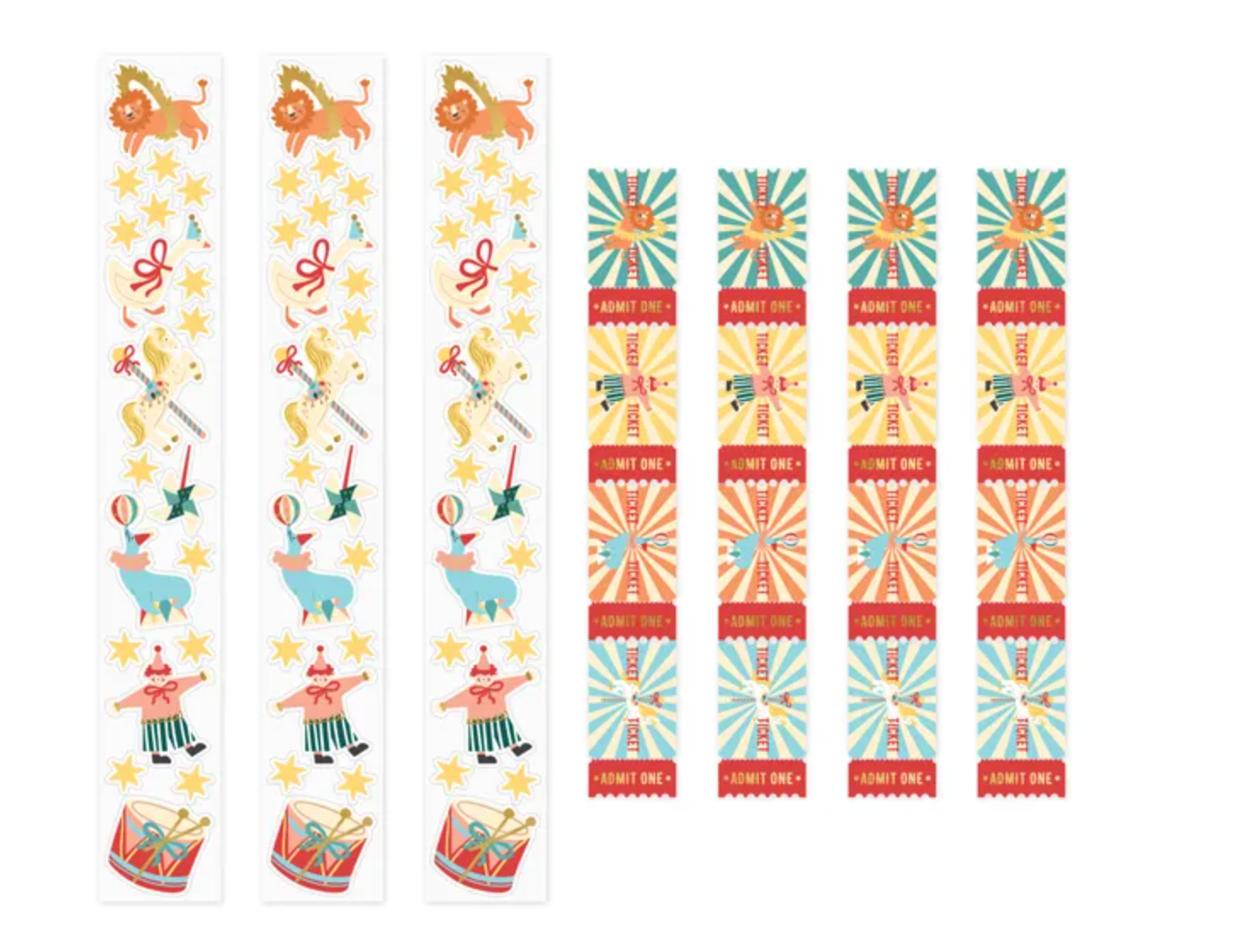 Naklejki Cyrk, mix wzorów i kolorów, zestaw zawiera 20 naklejek na blistrze i 16 biletów wstępu.(1 op. / 7 szt.) Czytaj więcej