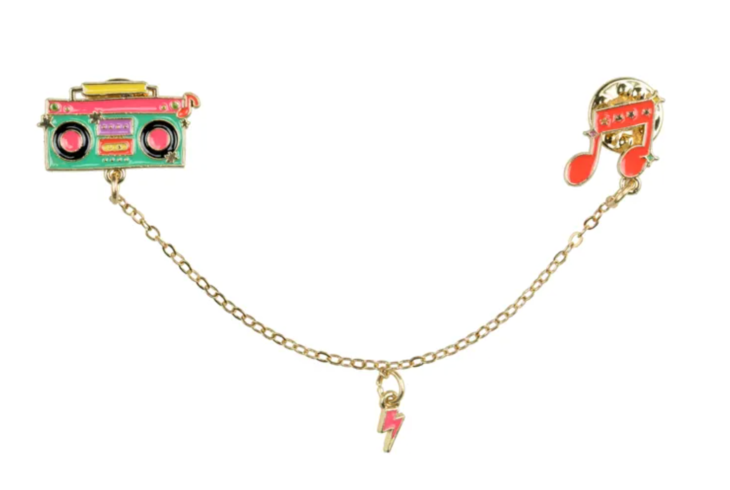 Przypinka na kołnierzyk Radio z łańcuszkiem, mix kolorów, wymiary ok. 13.5 cm. 1 op. / 1 szt. Czytaj więcej