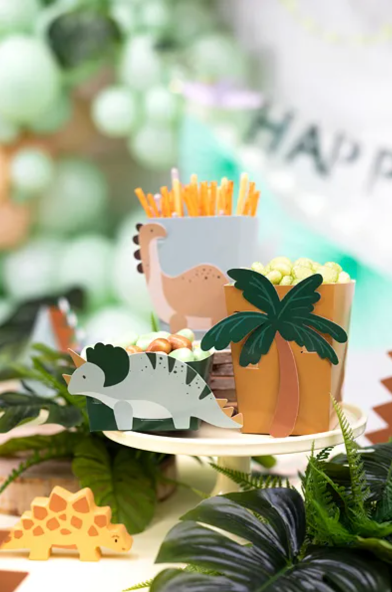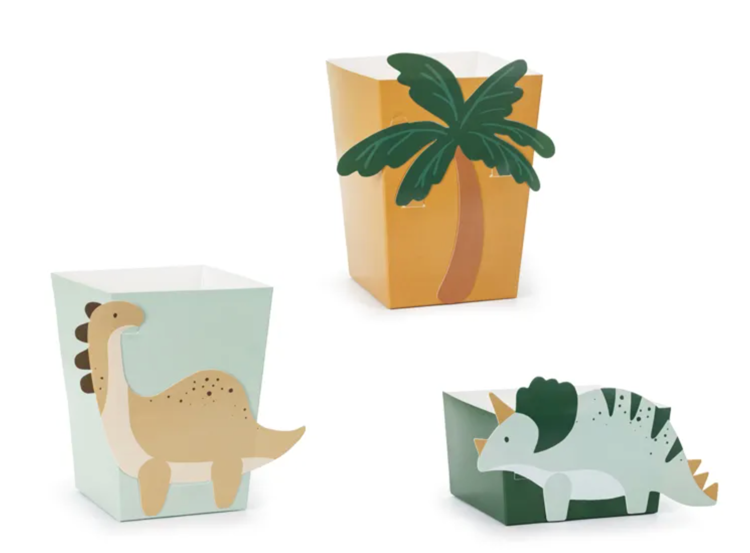 Pudełka na przekąski Dinozaury wykonane z papieru, mix kolorów. Zestaw zawiera 4 duże i 2 małe pudełka oraz 6 papierowych... Czytaj więcej