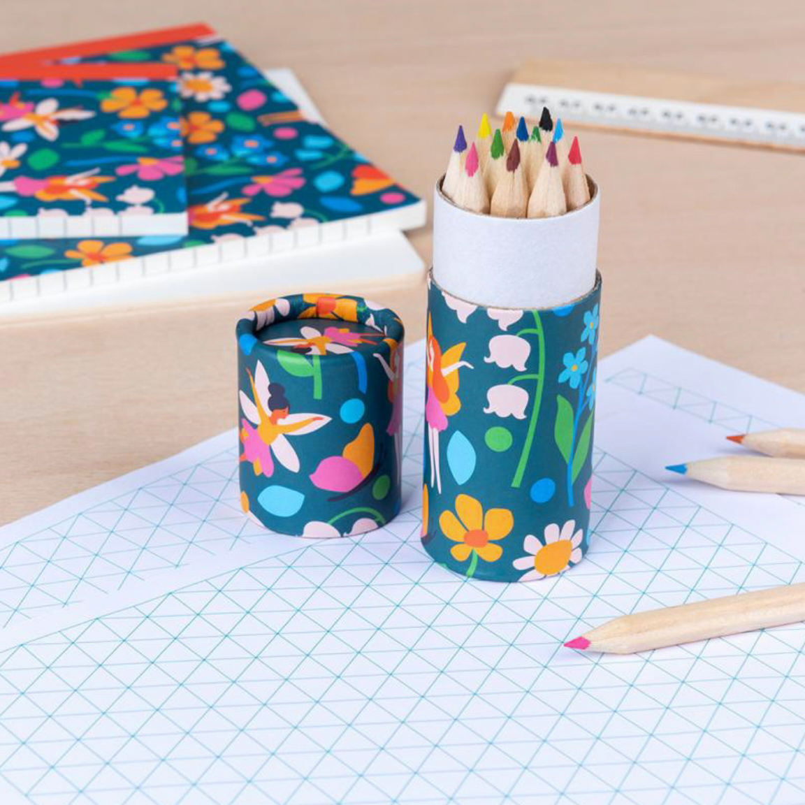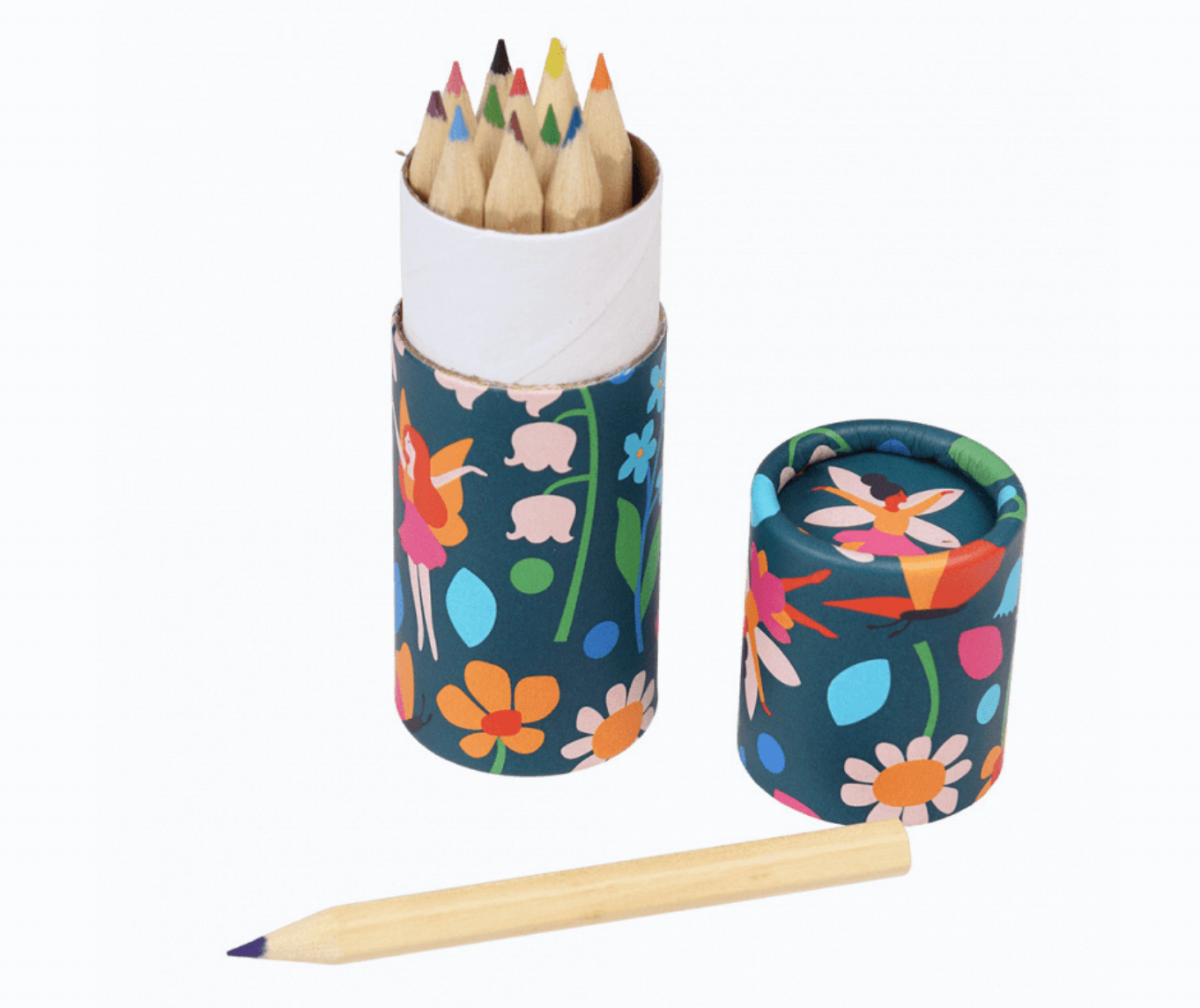 Oto świat kreatywnej zabawy z drewnianymi kredkami od Rex London, ozdobionymi uroczym motywem wróżek. Zestaw 12 kolorowych kredek jest stworzony z myślą o najmłodszych artystach. Zapewnia im narzędzie, z którym z radością wyrażą się artystycznie. Kredki pasują do innych przyborów z wzorem wróżek. Ponadczasowy design nawiązujący do wzornictwa z XX wieku nigdy się nie nudzi! Kredki zostały wykonane z trwałego drewna. Dzięki solidnej budowie, przybory do rysowania nie łamią się. Do tego kredki oferują bogatą paletę intensywnych, trwałych kolorów. Jednocześnie są miękkie, dzięki czemu małe rączki nie męczą się podczas rysowania.