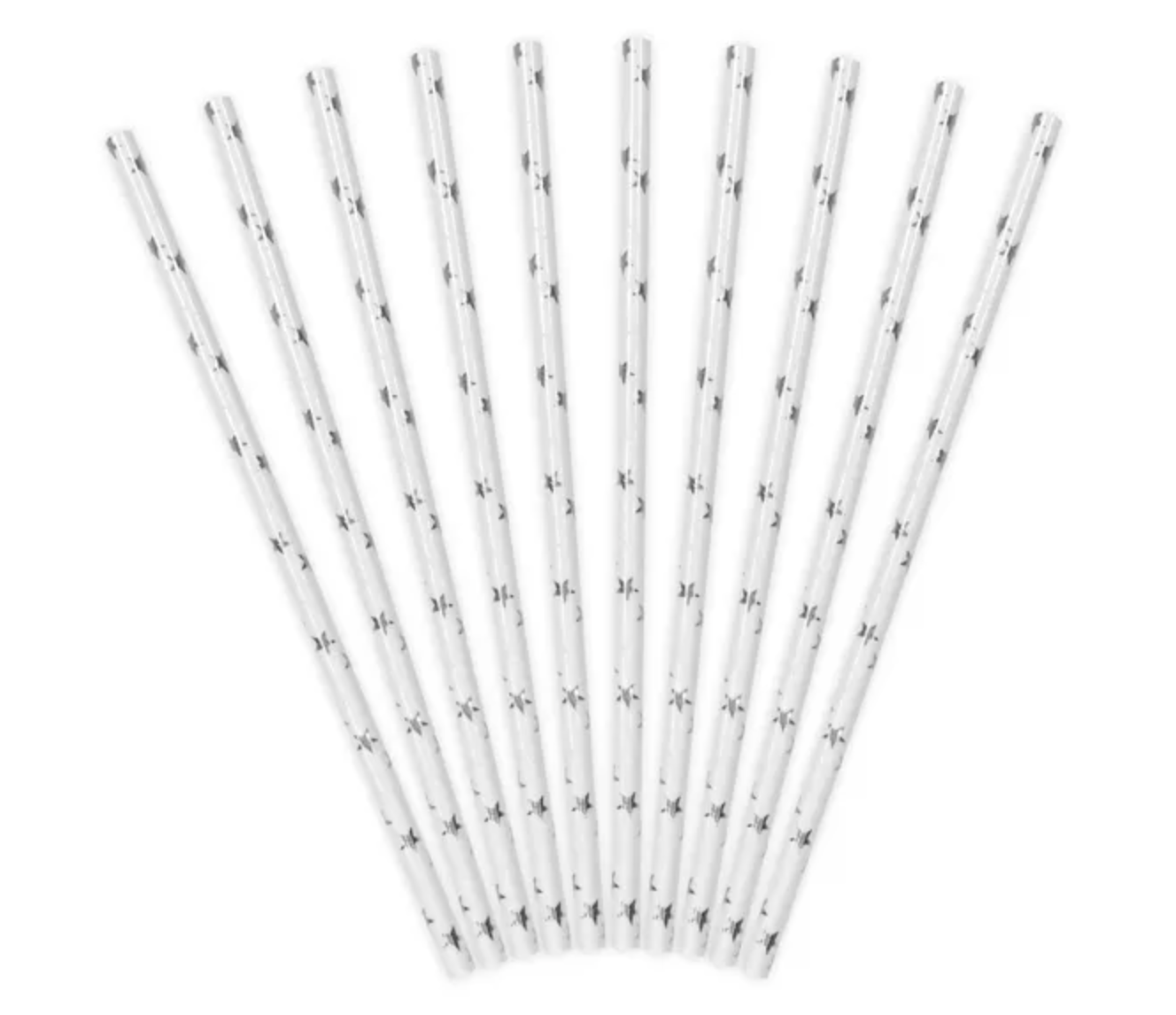 Słomki papierowe w kolorze białym, ze srebrnymi metalizowanymi gwiazdkami, długość ok. 19.5 cm.(1 op. / 10 szt.) Czytaj więcej