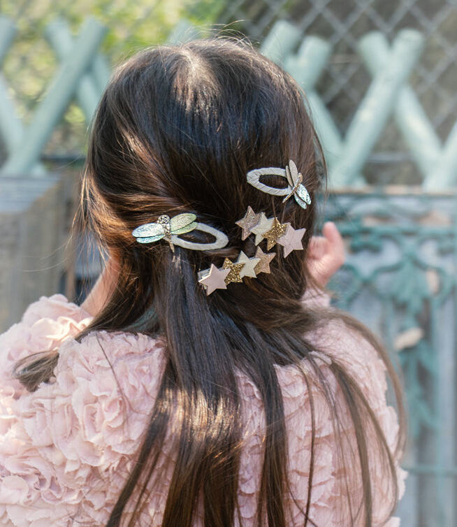 Spinki z gwiazdkami i brokatem – błyszczące dodatki dla małych marzycielek.