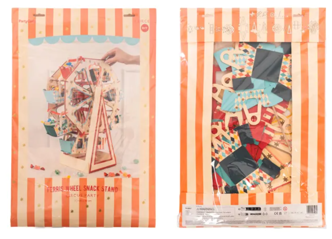 Stojak na przekąski Diabelski Młyn wykonany z papieru, z 8 kabinami na przekąski, do samodzielnego zamontowania, szerokość ok. 48 cm, wysokość ok. 50 cm.