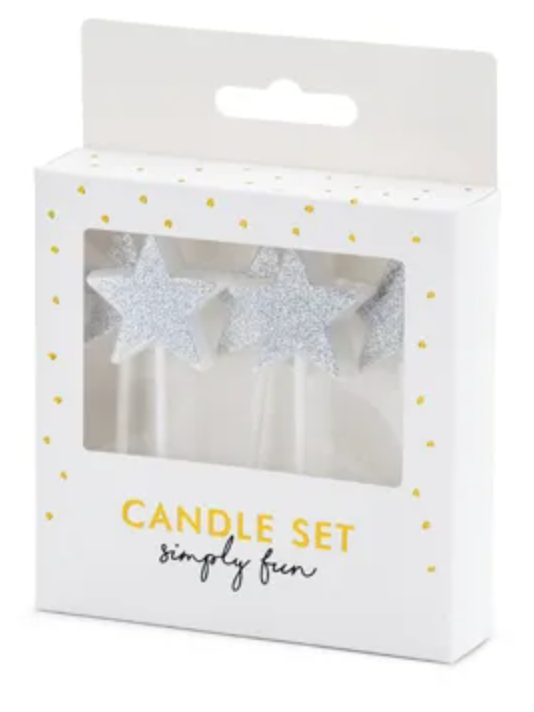 Świeczki urodzinowe Gwiazdki, srebrny, 3,5cm