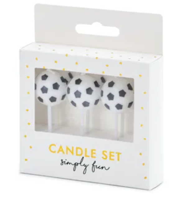 Świeczki urodzinowe w kształcie piłek, w kolorze biało - czarnym, wysokość ok. 2,5 cm.(1 op. / 6 szt.) Czytaj więcej