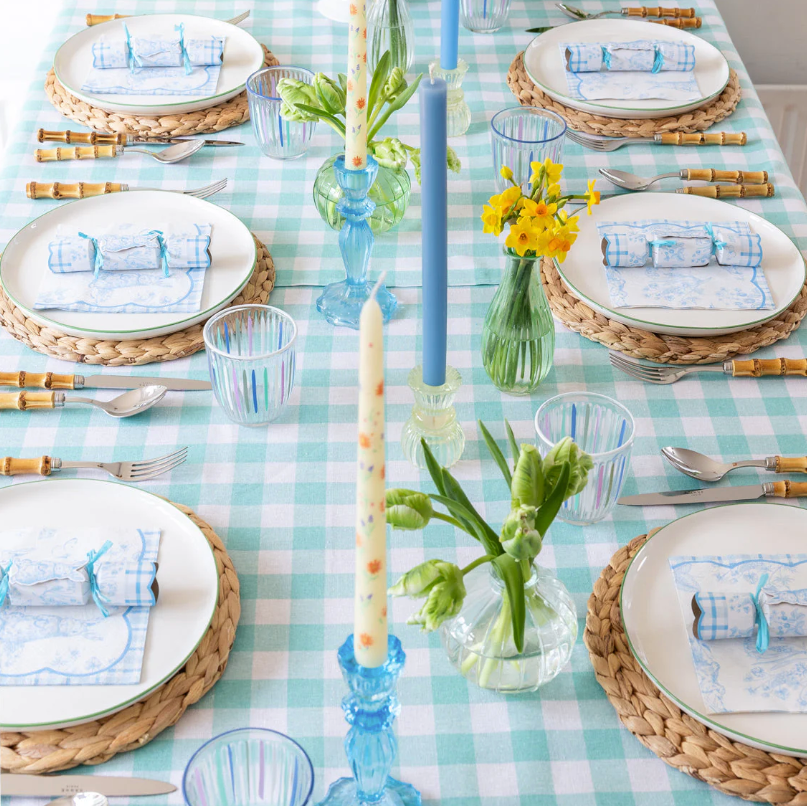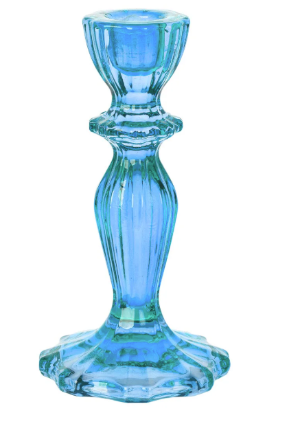 Szklany świecznik Boho – wysoki, jasnoniebieski
