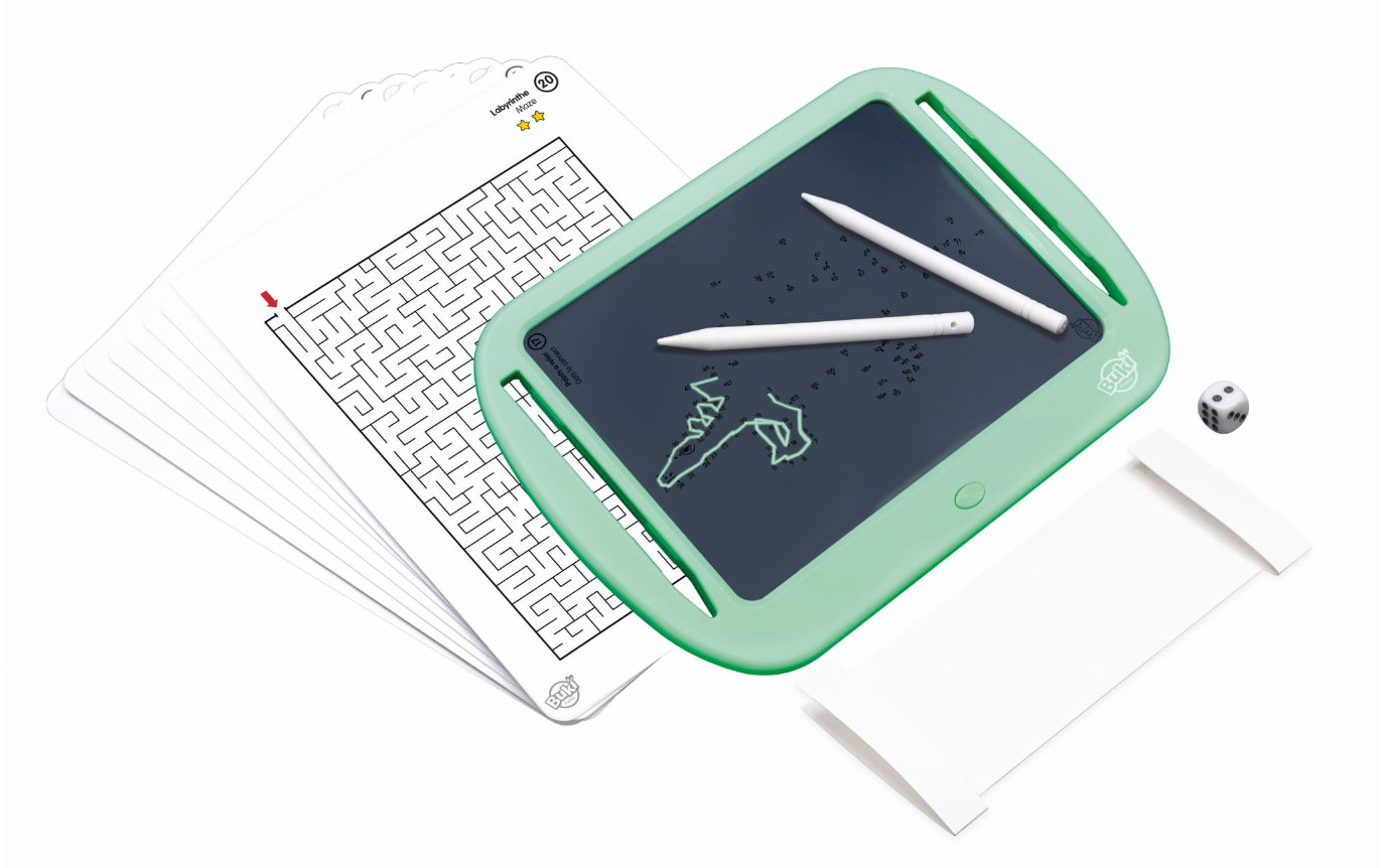 Tablet z ekranem LCD do grania w gry podróżne: samemu lub w parach. Włóż kartę z wybraną grą pod wyświetlacz, aby zagrać w takie gry jak kółko i krzyżyk, wisielec, statki, sudoku i inne. Do wyboru aż 20 różnych gier! Rozwiązania zaznacza się pisząc po ekranie specjalnymi rysikami dołączonymi do zestawu. Po zakończeniu wystarczy kliknąć przycisk, aby wymazać zapiski. Mały guzik z tyłu tabletu blokuje ekran, gdy chcemy zachować notatki na dłużej lub zrobić przerwę.