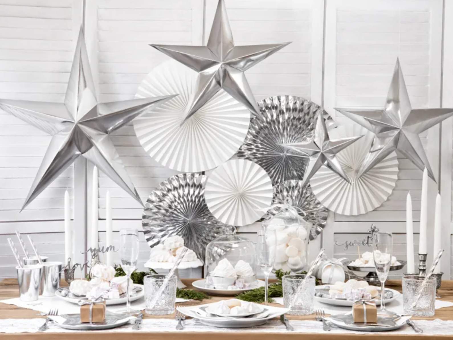 Talerzyki Gwiazdka wykonane z papieru metalizowanego w kolorze srebrnym, średnica około 18 centymetrów.(1 op. / 6 szt.) Czytaj więcej