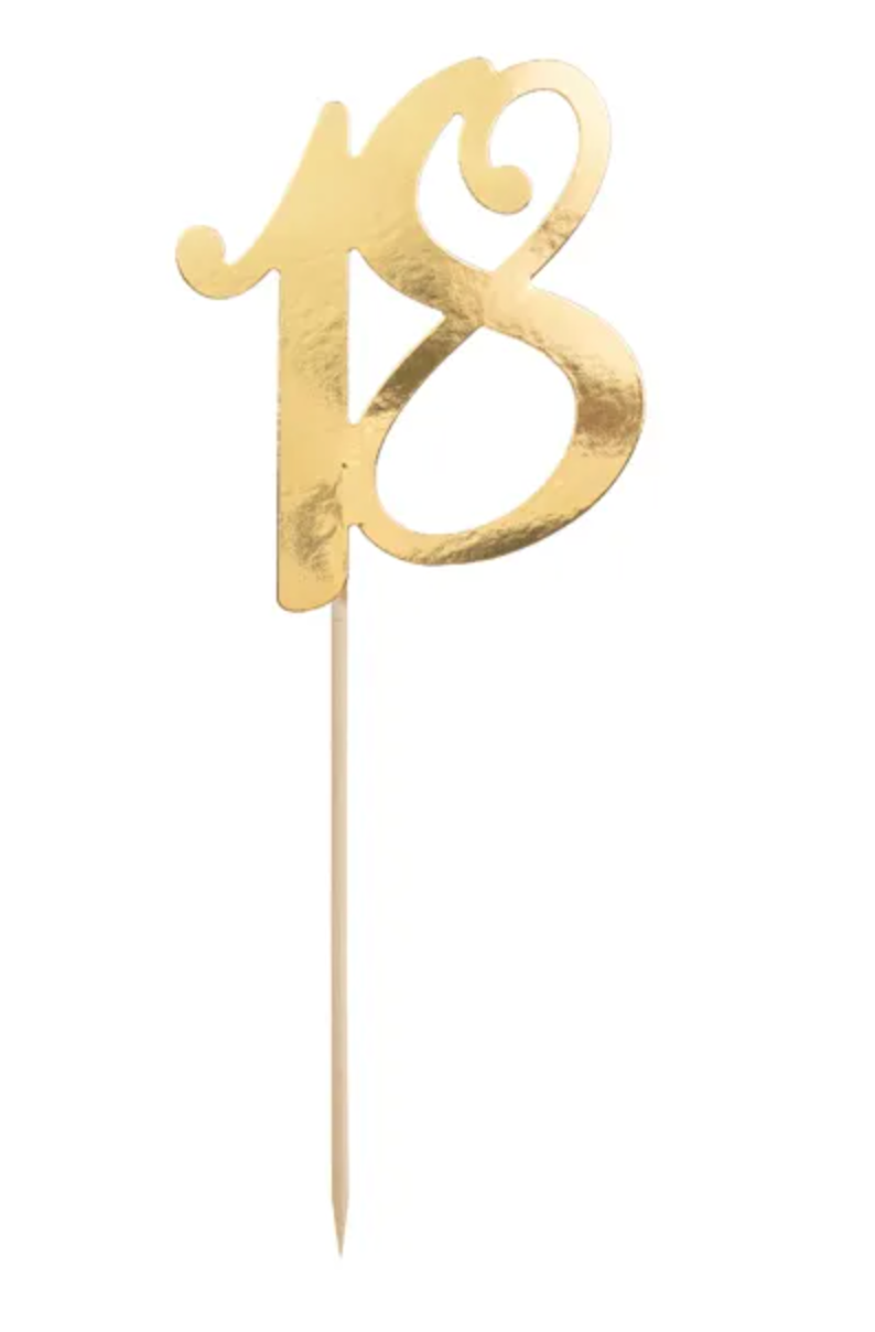 Topper na tort z liczbą 18 w kolorze złotym, wysokość ok. 20.5 cm. Czytaj więcej