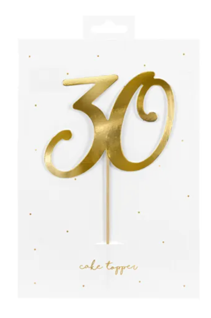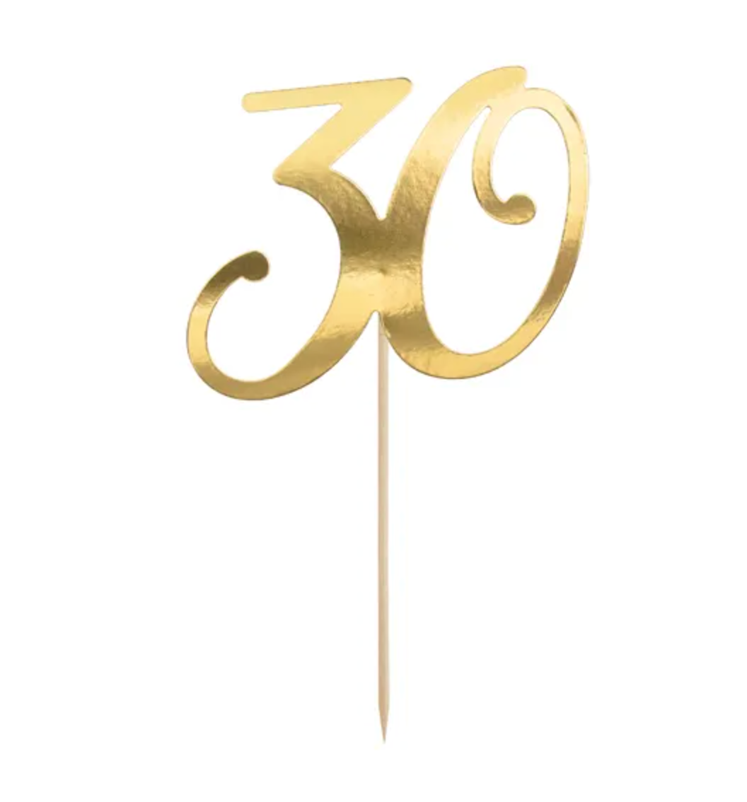Topper na tort z liczbą 30 w kolorze złotym, wysokość ok. 20.5 cm. Czytaj więcej