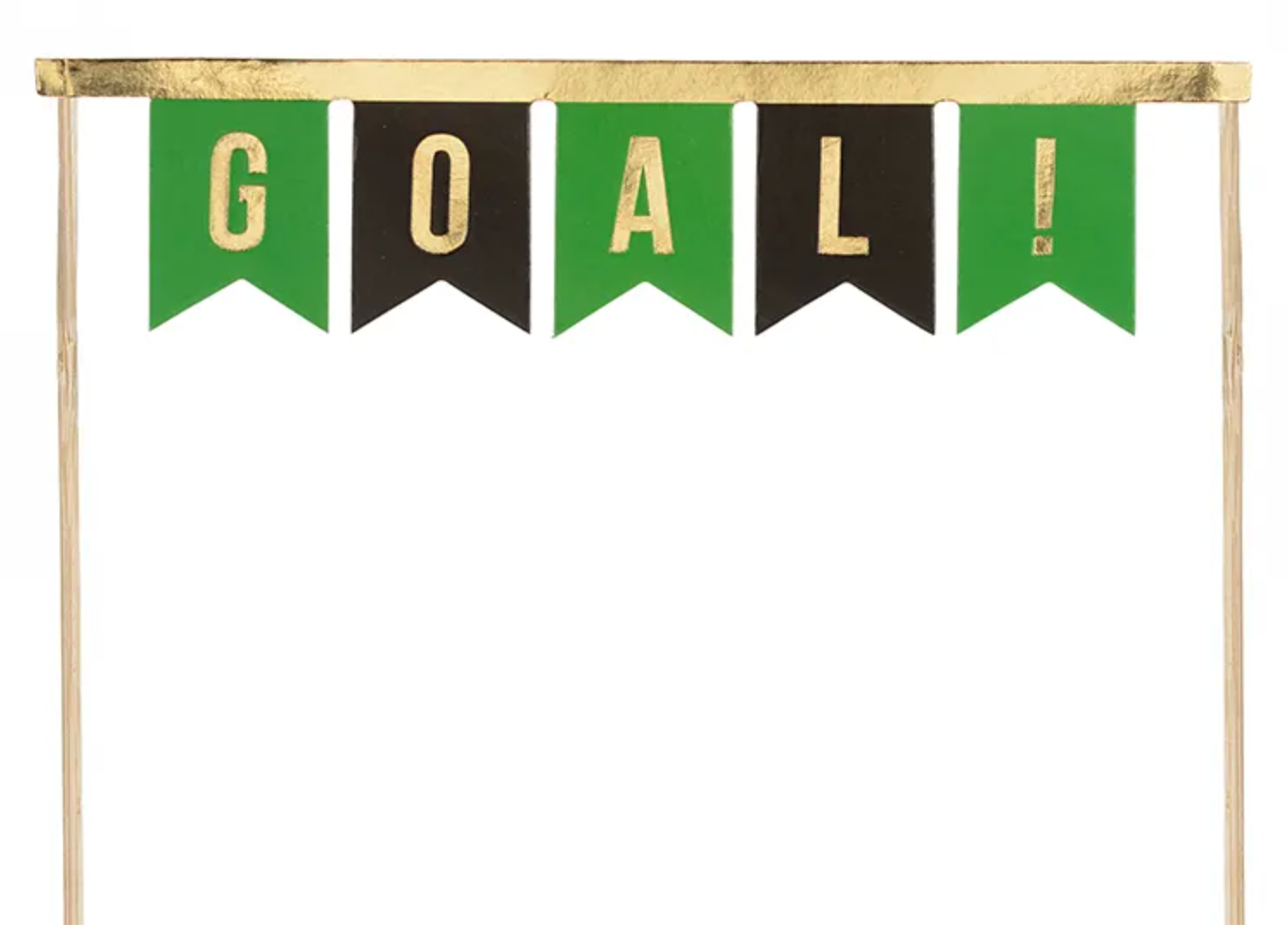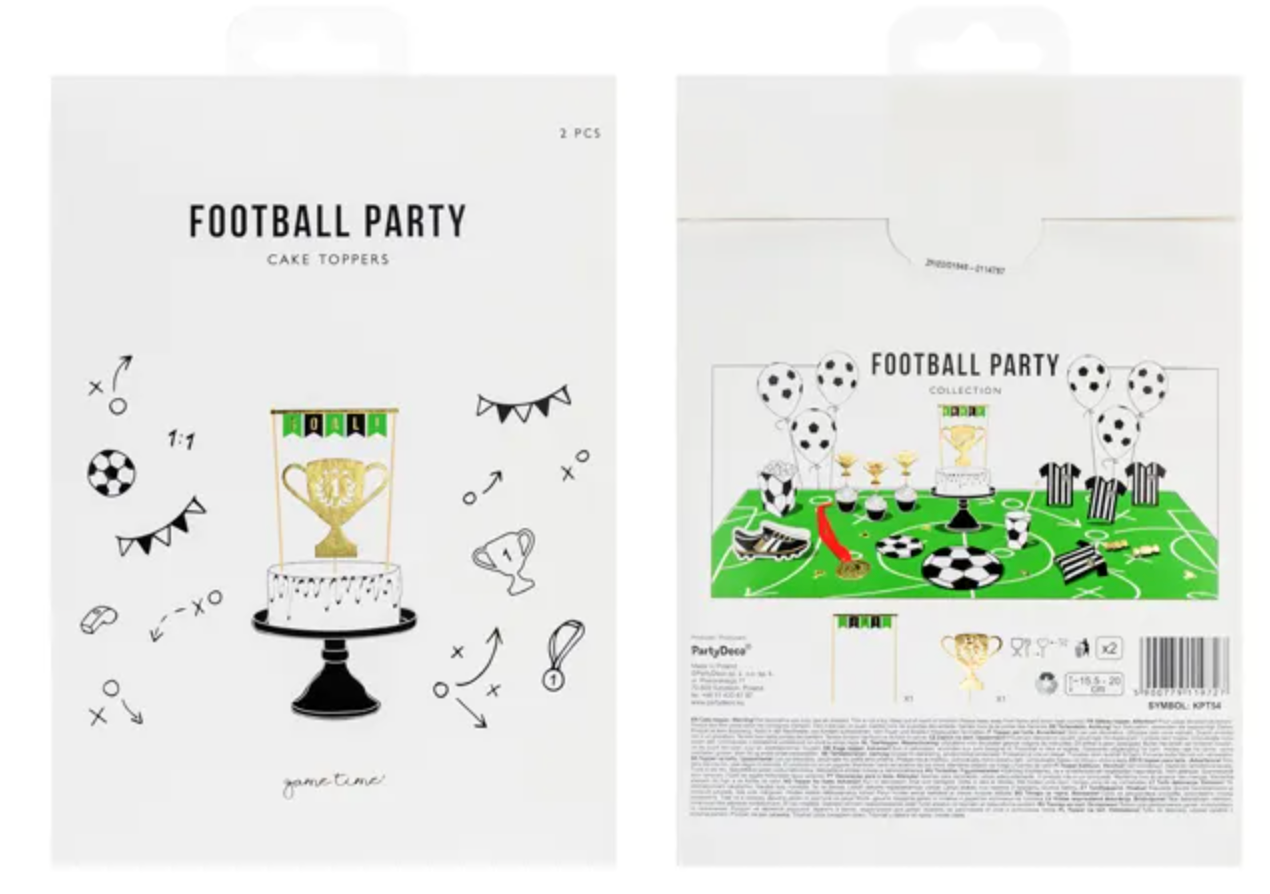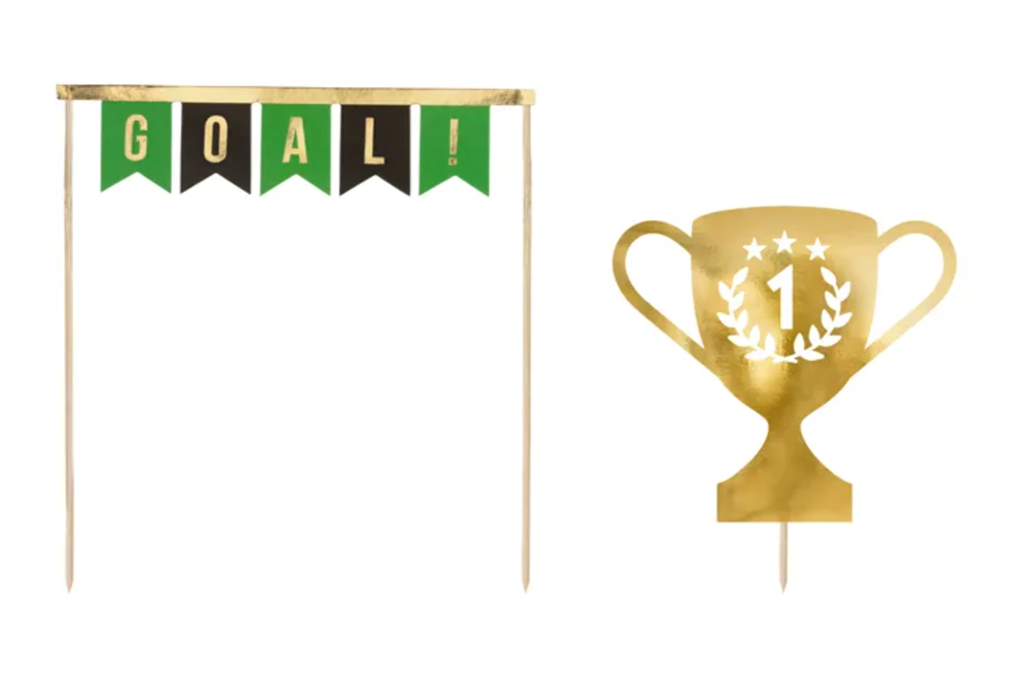 Topper na tort Piłka, mix wzorów i kolorów, zestaw zawiera 2 toppery na pikach - puchar i flagietki z napisem... Czytaj więcej