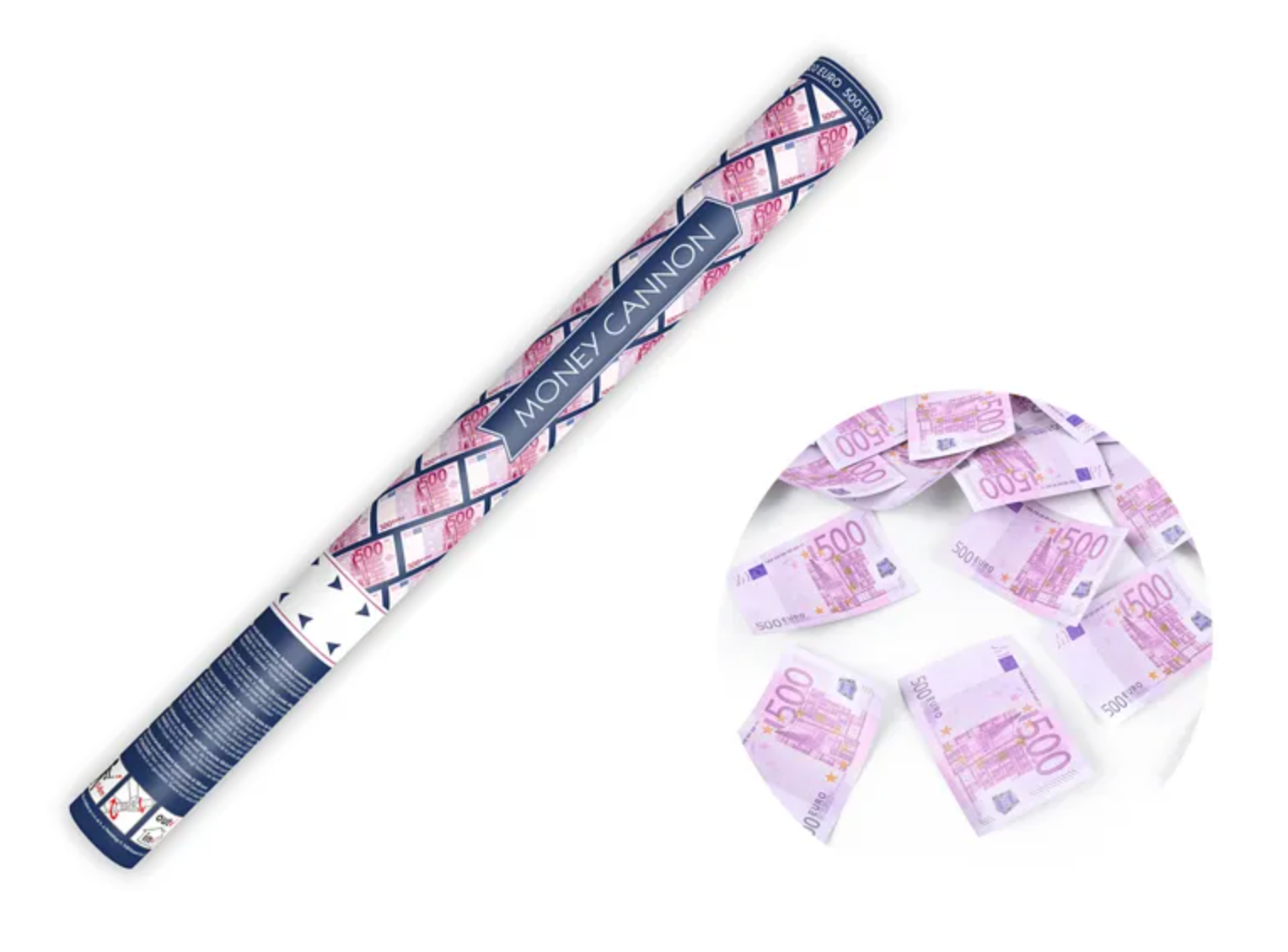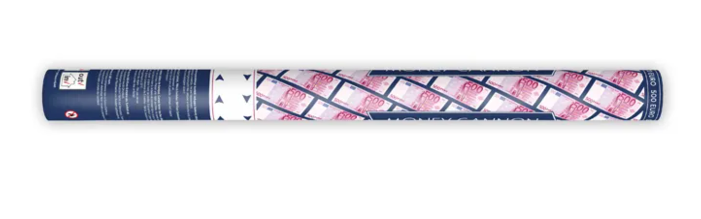 Tuba strzelająca papierowymi banknotami 500 euro, długość 60 centymetrów. Czytaj więcej