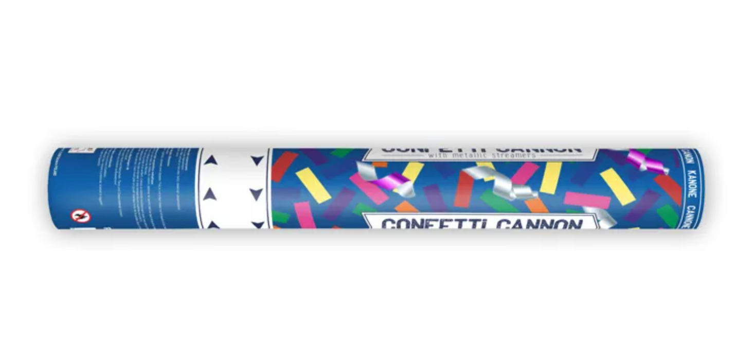 Tuba strzelająca papierowym, kolorowym konfetti i metalicznymi serpentynami, długość 40 centymetrów. Czytaj więcej