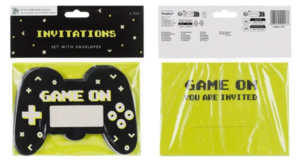 Zaproszenia w kształcie Gamepada w kolorze czarnym z kolorowym nadrukiem, wymiary ok. 16 x 11.5 cm. Zestaw zawiera koperty.(1 op.... Czytaj więcej