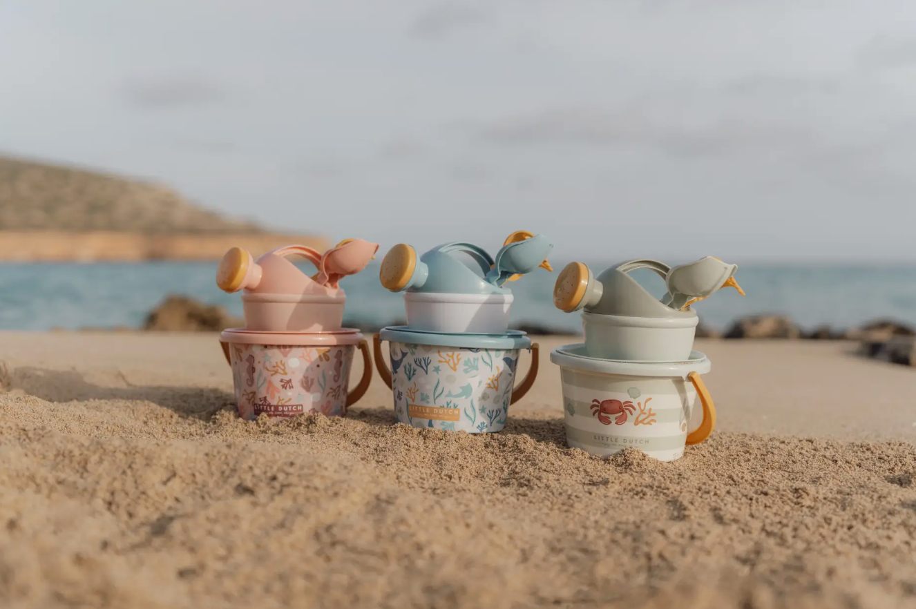 en 5-cio częściowy zestaw zawiera wszystkie gadżety, których Twoje dziecko będzie potrzebowało na plaży lub w piaskownicy: wiaderko, konewka, łopatka, grabki i sitko. Wykonany w niebieskiej kolorystyce z żółtymi akcentami motywu Ocean Dreams. Doskonała zabawa w wodzie i na plaży!